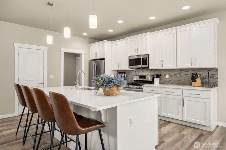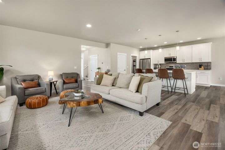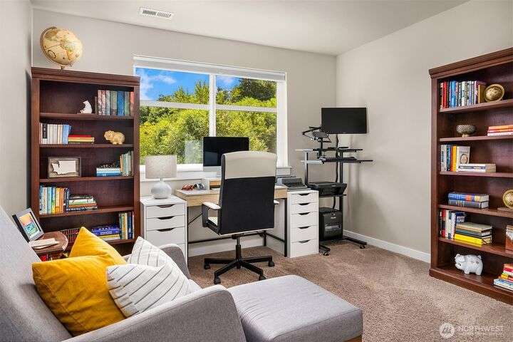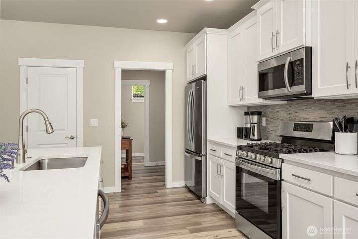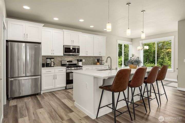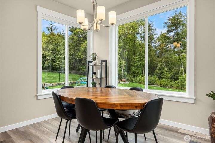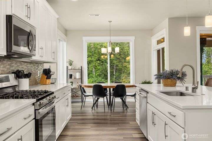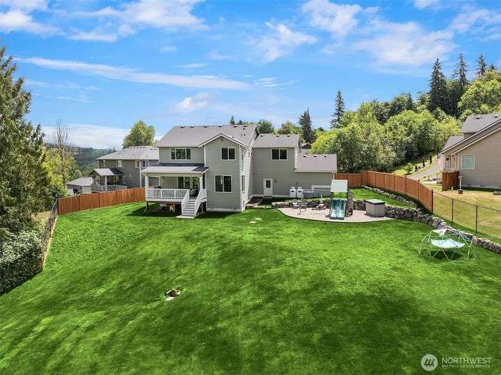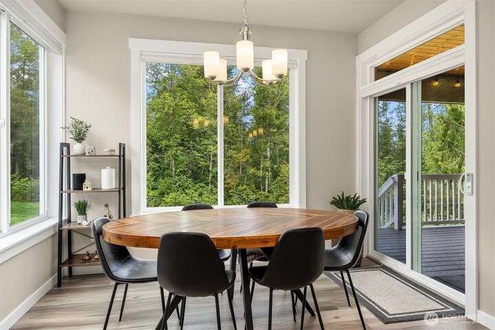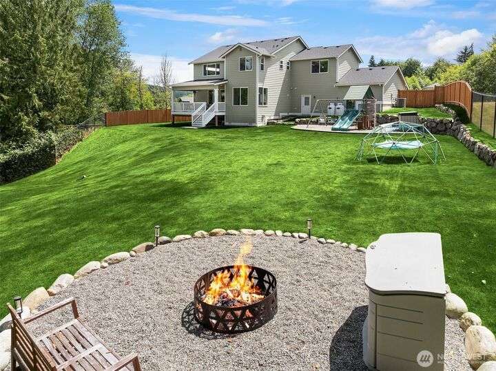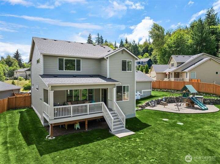 Experience refined living on 1.1 private acres in a tranquil, wooded enclave. This elegant home impresses w/ an open layout, peekaboo mtn views, rich LVP floors, a stunning stone fireplace & a chef’s kitchen w/ gas cooktop & oversized island. Smart home features incl. Nest system, while a high-efficiency heat pump ensures year-round comfort w/ glorious A/C. Main-floor den + 4 serene beds up provide versatile space for any lifestyle. Step outside to a spacious covered deck overlooking a fully fenced backyard oasis complete w/ playset, firepit & lush surroundings. Just minutes to trails, parks & a scenic drive to top amenities—luxury meets peaceful living here.