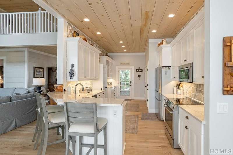 Life doesn't get any better than this! From your peaceful position inside the gated Summer Hill community, savor the incredible mountain view over Lake Glenville. Plus, with community lake access, dock, beach, picnic shelter, boat ramp, and paved parking, you'll enjoy life on the water with all these conveniences just moments away from your front door. This four-bedroom home has been thoroughly updated from 2022 through 2024 with new decks, roof, floors, paint, and many doors and windows, and the bathrooms were beautifully renovated at this time as well. The large two-car garage provides plenty of storage, with a bonus room situated above that could be used as a home office, additional storage, hobby space, and more. Summer Hill offers upscale lake living with modern amenities like water, underground utilities, and fiber optic internet. Whether you're looking for a summer lake home or a full-time residence in the beautiful Blue Ridge Mountains, 74 Wildberry offers all of the conveniences you need to enjoy recreation and relaxation on the highest-elevation lake on the eastern side of the country!