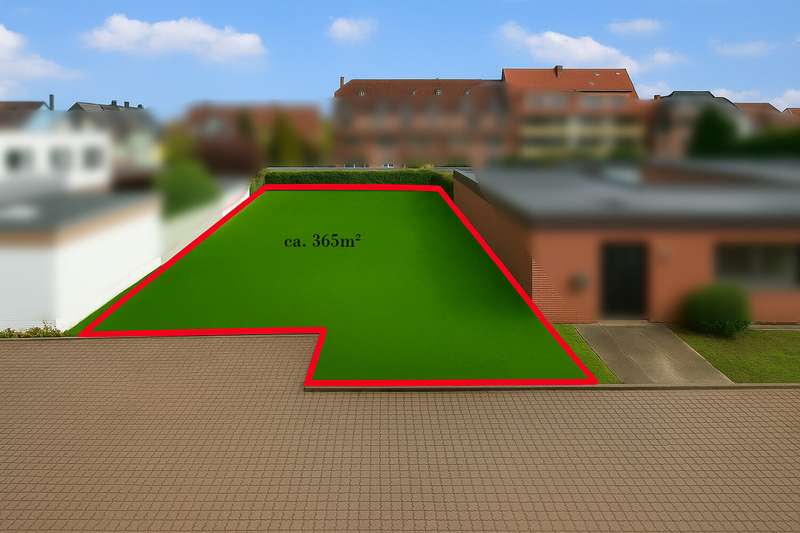This plot with a total area of approx. 455 m² is situated in a preferred residential location - a convincing opportunity to realize individual living wishes. The plot consists of 365 m² of floor space and 90 m² of private path, which allows discreet access and a high degree of privacy. Particularly noteworthy is the cul-de-sac location, which ensures a quiet and family-friendly living environment. The classic use is as a residential building plot, with the statics prescribing a closed development. The construction of a bungalow with a flat roof is permitted, which blends seamlessly into the harmonious surroundings and combines modern architecture with barrier-free living. The specified green area ratio (GRZ) of 0.6 offers extensive scope for design: there is sufficient space for individual garden concepts and recreational zones without restricting the development options. The plot has already been surveyed and can therefore be built on quickly. Thanks to its nature, it is easy to develop; all basic supply lines, such as electricity, water and sewage, are in the street and can be easily connected. The pleasant topography and optimal layout of the site open up many options for customized construction planning. The location offers sufficient flexibility to realize wishes regarding the number of rooms and room layout in the planned bungalow. Another advantage is the excellent quality of the location in the south of Duisburg. The surrounding area is characterized by well-kept neighbouring buildings, numerous green spaces and a very good infrastructure. Shopping facilities, schools, kindergartens and medical care facilities can be reached within a few minutes. There are also excellent connections to local public transport and the regional and national road network: the A59 and A3 are just a short drive away - ideal for commuters or anyone who wants a quick connection to Düsseldorf or the Ruhr region. Other plus points include the family-friendly living environment with a high recreational value. Walks in the nearby green spaces or quick access to popular leisure facilities underline the attractiveness of the property. The immediate neighborhood already has a variety of building styles, which makes the integration of a modern bungalow even easier. Anyone looking for a well-designed, conveniently located plot with individual building options will find a compelling option here in a sought-after residential location. Come and see for yourself the many possibilities and the quality of this offer during an on-site viewing. We look forward to hearing from you!