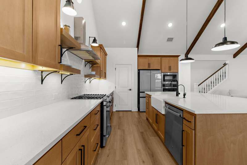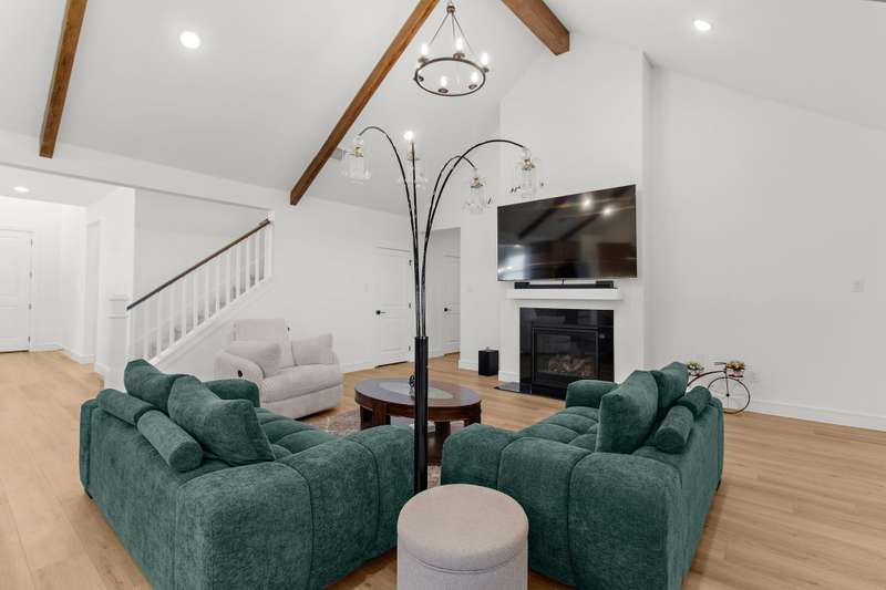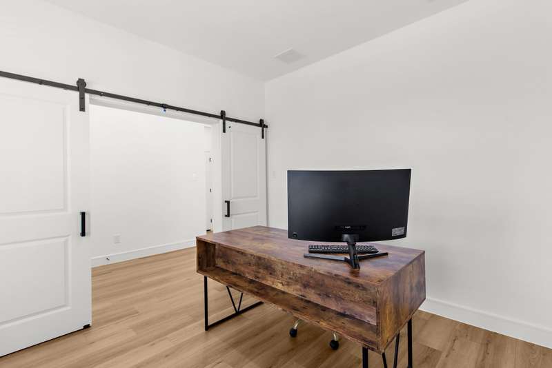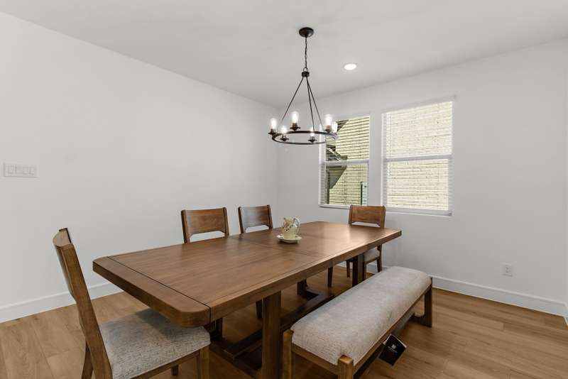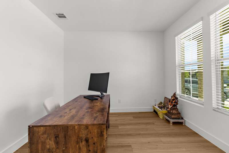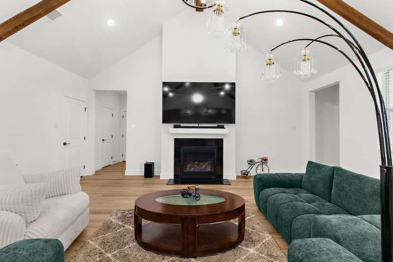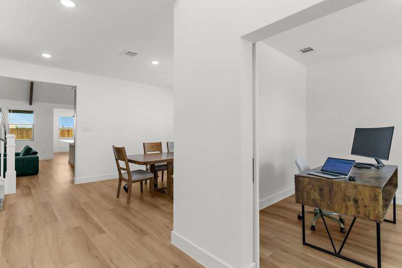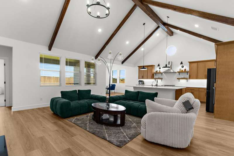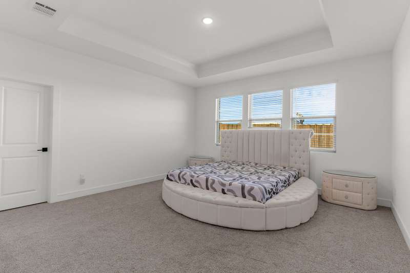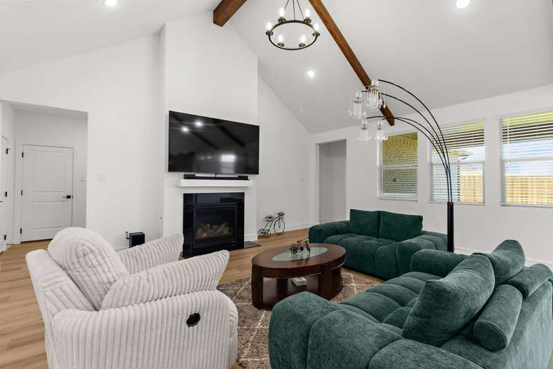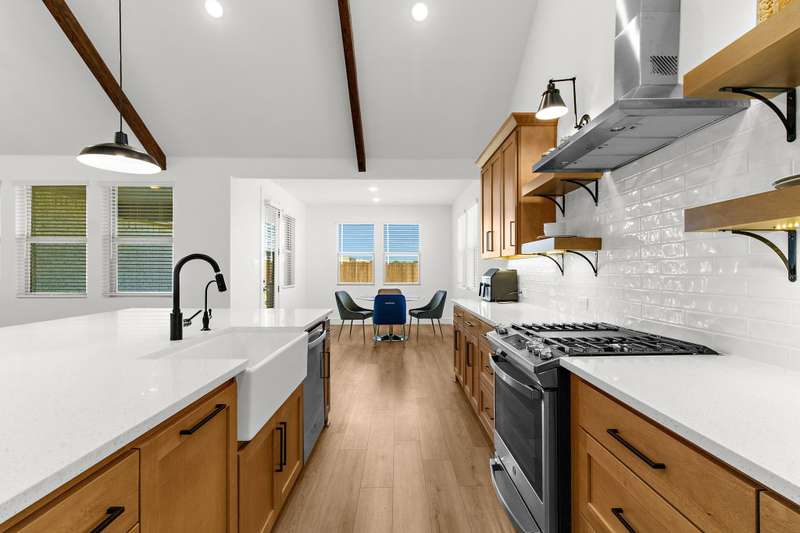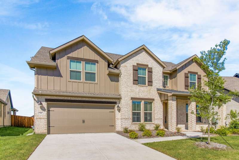 Welcome to this stunning residence, where soaring vaulted ceilings and a gracious entryway introduce an elegant, comfortable home. A private office with double French doors is ideal for work or retreat. Entertain in the formal dining room, then gather in the sun-filled open living area and farmhouse-style kitchen featuring dramatic high accent beams, custom cabinetry, a farmhouse sink, accent shelving, premium gas range, double ovens, refrigerator, and a spacious island with a breakfast bar. Adjacent, an oversized breakfast room offers a charming spot for relaxed mornings. The inviting living room features a cozy fireplace and a wall of windows that fill the space with natural light and lovely views. The primary suite is a true retreat with a sitting area and spa-inspired bath boasting dual vanities, a freestanding soaking tub, and a large walk-in shower with a rain head. Additional conveniences include a large laundry room with a whole-home water softener and a guest powder bath. Upstairs, you'll find a generous game room, two spacious bedrooms, a full bath, and a versatile bonus storage or hobby closet. Elegant wood-look flooring flows throughout the first floor (excluding bedrooms), complemented by custom light fixtures, and a three-car tandem garage offers plenty of space for vehicles, including longer trucks. The backyard is your personal oasis with a covered patio, perfect for gatherings or relaxing evenings. A new Amenity Center will elevate your lifestyle, while the community offers a dog park, fishing ponds, pool, scenic trails, fitness stations, and an event lawn. Schedule your showing today and experience the perfect blend of luxury, comfort, and community living! Washer, dryer & fridge included. If you want current furniture & housewares included then it's an additional $300 per moth.