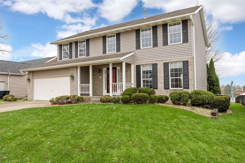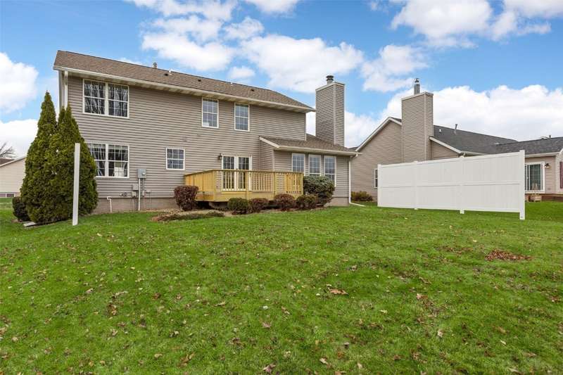 Beautiful and spacious 2 story home in the Linn-Mar School District, offering 2,071 sq ft above grade and a functional layout designed for everyday comfort. $5,000 buyer concession at closing. The main level features a welcoming living room with built-in shelving and a gas fireplace, formal dining room, family room and/or flex space. The kitchen offers excellent workspace with pull-out drawers, a breakfast bar overhang, crown molding, and new 2025 GE stainless appliances. Guardian French doors lead to the new wood deck and railing, large outdoor space, mature trees and white vinyl privacy fencing. A convenient main-floor half bath and hardwood flooring complete the main level. On the second level, the primary suite provides generous space with an 8'6" x 6' walk-in closet, bathroom ensuite with garden tub, elongated stool and walk-in shower with glass doors (plumbed for 2 future sinks). Three additional bedrooms - well-sized and flexible and a laundry room with washer/dryer. The expandable lower level includes a future bath stub. Additional features include roller blinds, a attached garage, new wifi enabled garage door opener with camera system, Anderson storm door, one year home warranty and access to Willowood Park & Pool. A well-maintained home in a desirable location—ready for its next owner. Radon system to be installed prior to closing. Average gas: $58, average electric: $98. Some photos have been virtually staged.