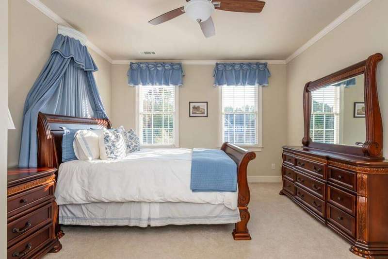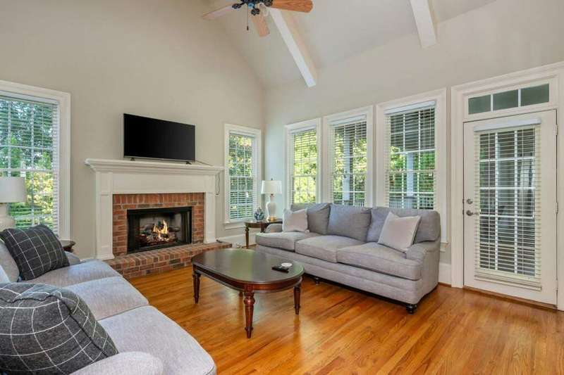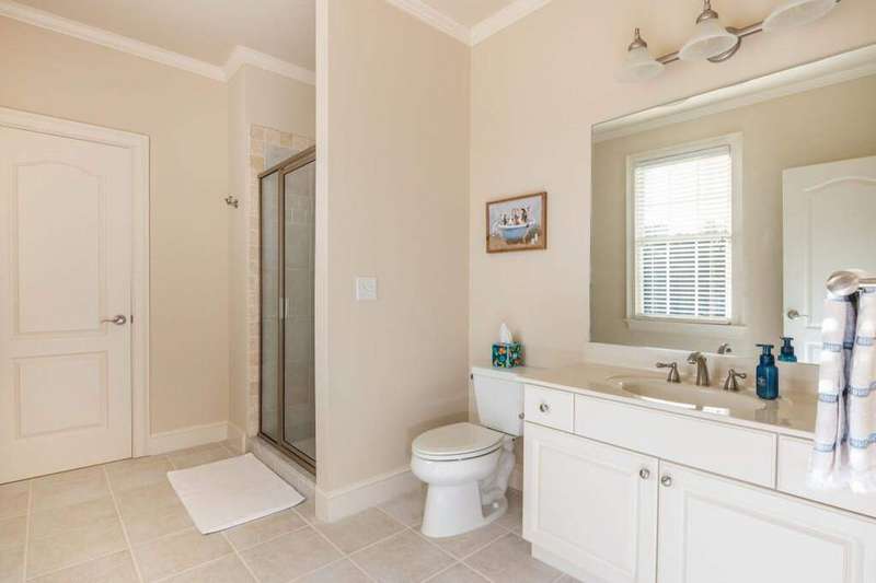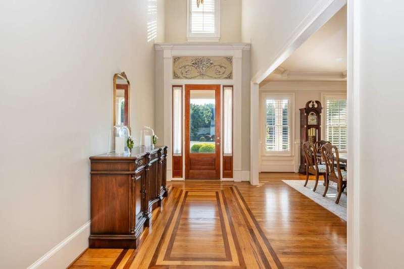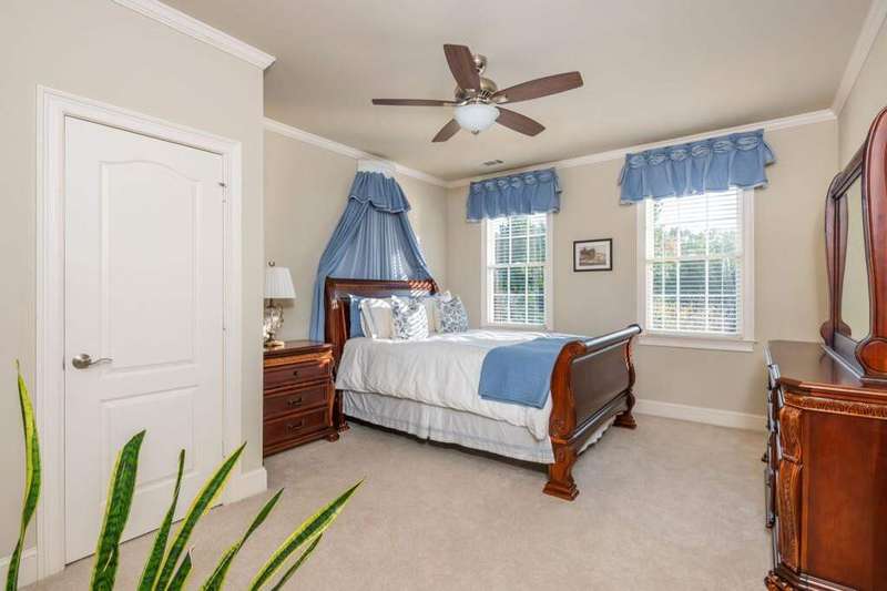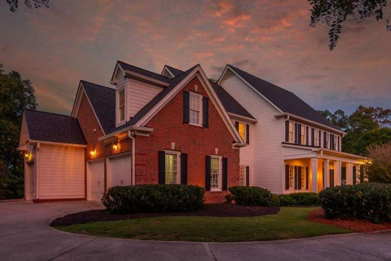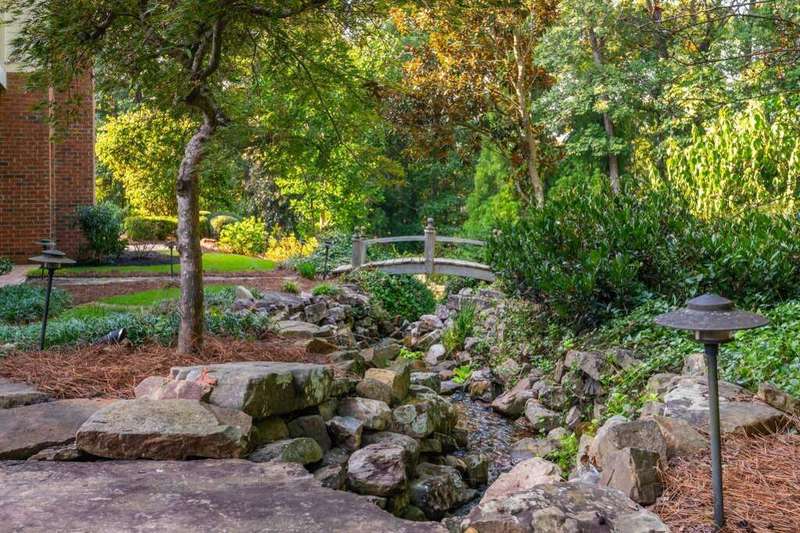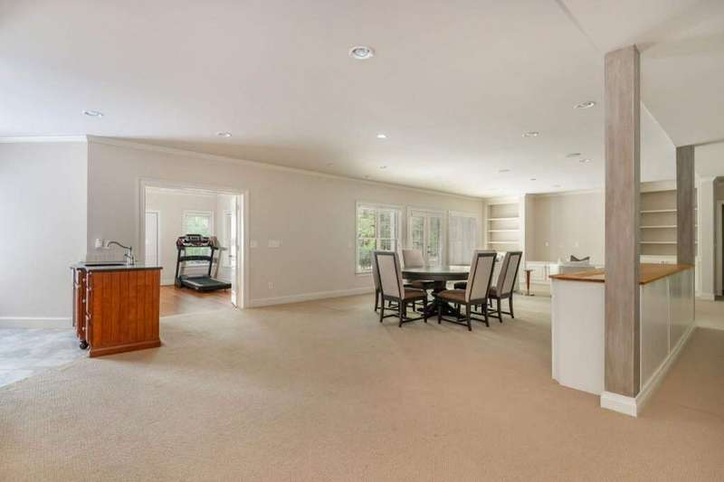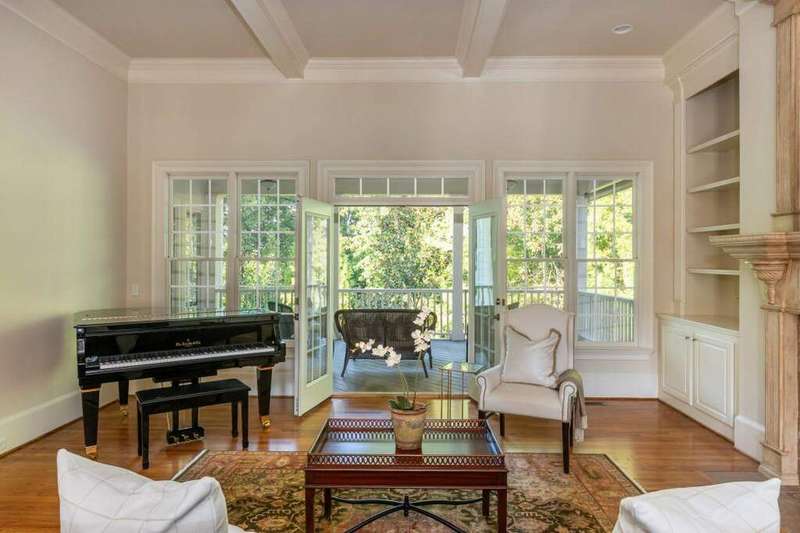 Experience timeless elegance and serene living in this custom-built estate by award-winning Chatham Homes, set on 2.5 acres in the exclusive Shoals at Arbor Hill community. This 6-bedroom, 6.5-bath residence showcases refined craftsmanship and luxurious details throughout. A welcoming Southern porch and dramatic two-story foyer lead to a large dining room with exquisite architectural accents. The living room features a coffered ceiling, built-ins, and French doors opening to a spacious deck overlooking the private backyard. Additional highlights include a butler's pantry, laundry room with office space, and abundant storage. The gourmet kitchen is the heart of the home, offering stainless steel appliances, custom cabinetry, an oversized island, and expansive counters, flowing seamlessly into a bright keeping room with fireplace. The main-level owner's suite is a private retreat with fireplace, sitting area, dual walk-ins, and a spa bath with soaking tub, dual vanities, and walk-in shower. Upstairs are four en-suite bedrooms, each with a walk-in closet. Enjoy outdoor living from the covered porch or terrace level, complete with bedroom suite, kitchenette, recreation space, and storage. The grounds feature a French-style garden, koi pond, stone fire pit, and custom stream with waterfalls. Adding to its appeal, The Shoals at Arbor Hill is an equestrian-friendly community, allowing horses on property with HOA approval -a rare lifestyle opportunity. Minutes from shopping, dining, and top-rated schools, this home offers unmatched luxury, privacy, and serenity. Welcome Home.