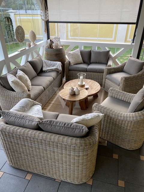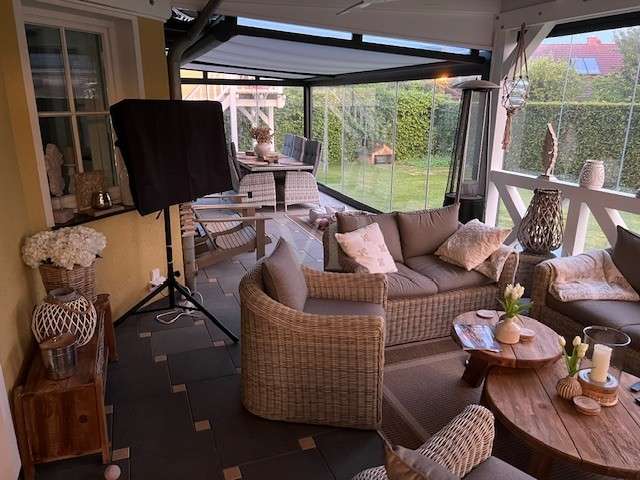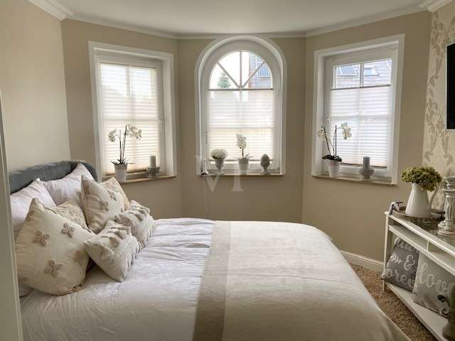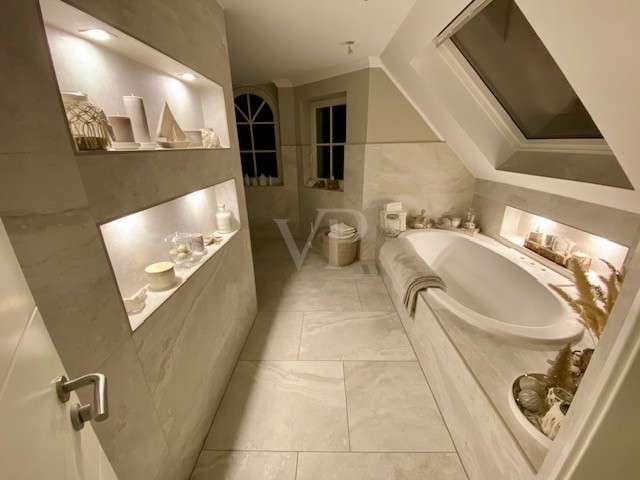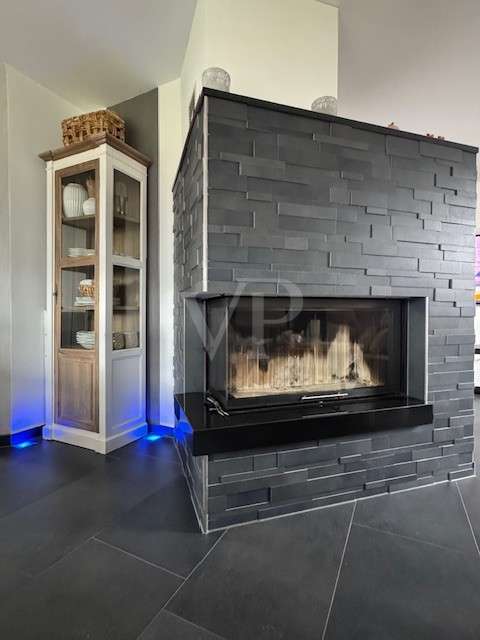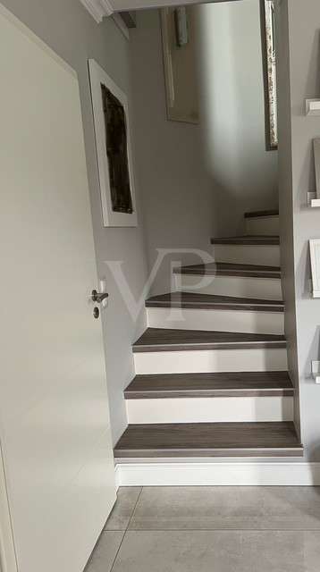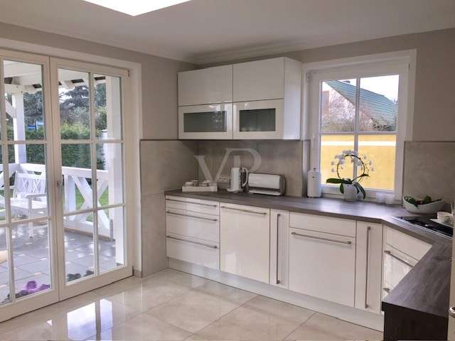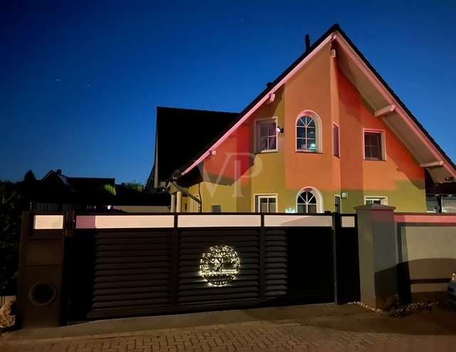 Modernized detached house with upscale furnishings and spacious plot This detached house from 1998 was built on a 594 m² plot of land plot and offers enough space for individual living with a living area of approx. 154 m². The property was last extensively modernized in 2023 and presents itself in a high-quality condition. **Room layout and furnishings** The house has a total of six rooms, including four spacious bedrooms. Two modern bathrooms offer maximum comfort, with both bathrooms equipped with illuminated niches and high-quality LED mirrors. The bathrooms, which were remodeled in 2023, include a flush toilet with gesture control and particularly exclusive washbasin-cabinet combinations. In the living area, a large glass corner fireplace with Villeroy & Boch brick slips creates a pleasant atmosphere. Villeroy & Boch floor tiles underline the upscale furnishings. A Berker home control system with CAN bus and touch panel ensures convenient operation of many functions. Recessed lighting in the floor with color control and scene switching complements the modern lighting concept. The kitchen is equipped with high-quality built-in appliances from Berbel, Miele and Villeroy & Boch. In addition, all Berker switches and sockets are fitted with glass frames. High-quality stucco moldings have been installed throughout the house, underlining the stylish ambience. Satin-finished glass doors and designer flowing wallpaper tastefully round off the interior. A spacious utility room and an additional storage room offer plenty of storage space. The house has floor heating in combination with underfloor heating, which provides pleasant warmth. **Outdoor area and special features** The spacious outdoor area offers a large Bangkirai wood terrace and a tiled outdoor kitchen with high-quality equipment, including a Napoleon grill, an additional wok grill and a gneiss granite worktop. A separately built tree house can also be used as a sauna. The pergola with adjustable slatted roof is completely powder-coated and is suitable as a roof for a hot tub. A special highlight is the approx. 37 m² conservatory from Weinor. It has large sliding glass elements that can be opened completely. In addition, LED interior lighting, electric roof and side darkening and two powerful infrared heating systems ensure pleasant temperatures at any time of year. Two modern ceiling fans complete the equipment. The entire property is secured by a floor-to-ceiling double wire mesh fence. In addition, the burglar-proof hardwood patio doors and windows are fitted with mullioned windows, some of which are arched. Insect screens have been installed on some of the windows and doors. An electrically operated roller-sliding gate with app control enables convenient access. There is also a large letter and parcel collection box and a separate indoor area - ideal for keeping animals. The roof has been completely recoated, while the exterior plaster from Brillux with lotus effect ensures high weather resistance. This detached house combines modern technology with a well thought-out room layout and high-quality fittings - ideal for sophisticated living.