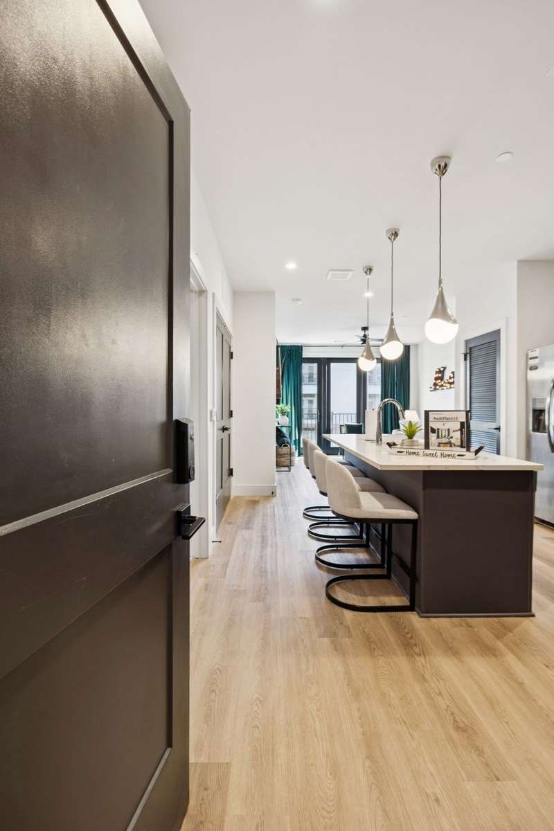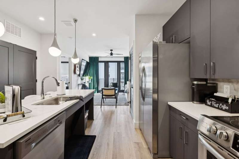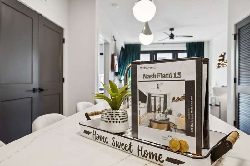 NOO-STR! Sophisticated and flexible, The Nash Flat at the Odyssey offers a premier approach to condo ownership with both occupied and non-owner-occupied short-term rental opportunities and includes a community pool, gym, easy street parking and a parking garage. This unit features a custom interior design curated for comfort and style-complete with spacious living area furnished with a queen size pull-out sofa along with floor to ceiling windows and a balcony. The well-equipped kitchen includes a kitchen island that seats four, an owner's closet, and a full size laundry closet. The spacious primary suite with custom black out blinds, tiled bath, and a large walk-in closet creates a luxury feel and can accommodate a party of four easily. It also includes thoughtful accessibility as a handicap-friendly floor plan. Guests and owners alike rave about this personalized five-star Airbnb, where every detail-from local art to a Thomas Rhett-signed guitar-adds to its Nashville charm. Perfectly positioned in the heart of the West End Park neighborhood, steps from Centennial Park and near Vanderbilt University, this location puts the best of Nashville at your door. Enjoy the convenience of neighborhood favorites like Tito's, a local favorite just downstairs. Whether you're seeking a turn-key STR investment or a stylish urban retreat, this one-of-a-kind condo at The Odyssey delivers the ideal blend of luxury, flexibility, and Music City energy.