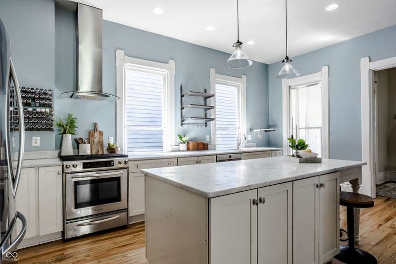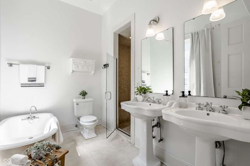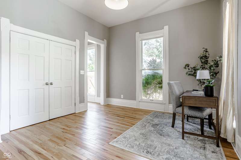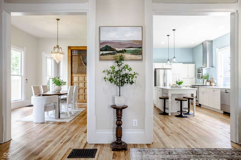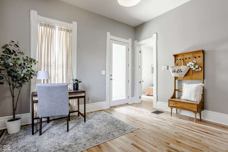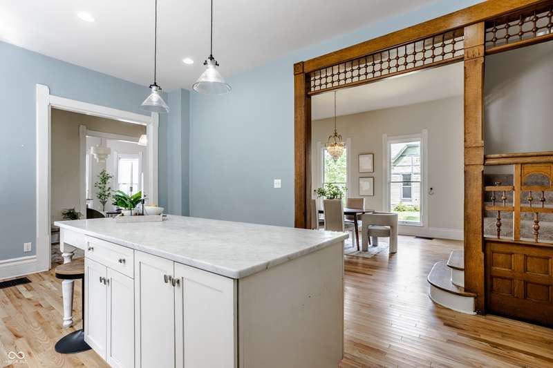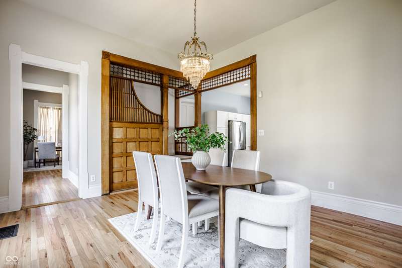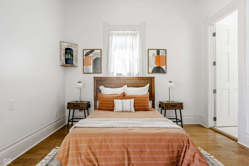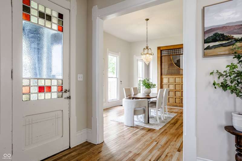 Lovely historic cottage situated in the thriving Herron Morton neighborhood. Lofty ceilings, built in bookshelves, a beautiful trimmed focal point in the dining room and floor to ceiling bay windows highlight this homes 1900's charm. A bright open kitchen featuring a large island, stainless steel appliances, and marble countertops perfectly blend modern conveniences with the appeal of old world details. The upstairs area has loads of possibilities with two large bedrooms and an additional full bathroom. The primary bedroom en-suite with sitting room on the first floor opens to the fully fenced yard and in-ground pool. Enjoy the covered patio, gazebo and fire pit in the yard perfect for entertaining and al fresco dining. Don't miss this charmer nestled near HMP park, coffee shops, book stores and more.