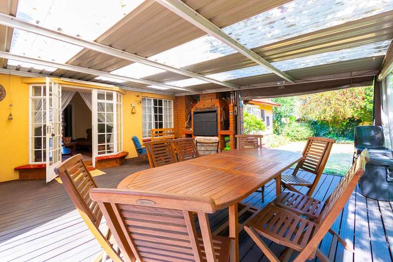 Nestled within a very sought after part of Brackenurst -This well maintained home offers an entrance hall leading to an open plan dining, study area, TV lounge and the spacious lounge with a fireplace leading covered entertainment patio with a built-in braai overlooking the beautiful green gardens and sparkling swimming pool. The spacious kitchen has melamine counter tops, a gas hob, double eye level oven and a separate scullery and laundry. There are 4 generously well sized bedrooms with built-in cupboards and laminated flooring, 2 bedrooms have en-suite bathrooms and the third bathroom serves the other 2 bedrooms. The guest toilet provides added convenience and privacy for guests as well. This lovely home is complete with a double garage, a storeroom and a carport. Well secured and close to shops, schools, churches and so much more...