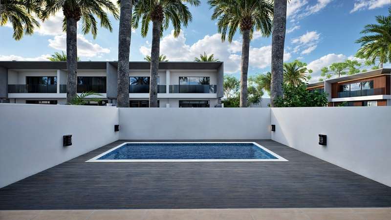 Modern two-bedroom townhouse in a new private condominium called Zion Oasis, with private pool and garden, about 10 minutes from Burgau Beach, for sale in Almádena, Luz, Algarve. This 2-bedroom villa, in a privileged location just a few minutes from the beach, has been thought out in detail to offer convenience, luxury, comfort and privacy to its residents. With two floors and spacious areas, the villa comprises a small garden. Upon entering the house, we have access to the fantastic open-plan living room with dining room and fully-equipped kitchen with modern built-in appliances. There is also access to the terrace with barbecue and private pool, a service bathroom, and the stairs to the upper floor, where the bedrooms are, both with en-suite bathrooms and balconies. This villa is an excellent option for a permanent residence or second home. With stunning beaches nearby, renowned golf courses, quality restaurants, easy access to the EN125 national road and the A22 highway, and Faro International Airport is about an hour away. CHARACTERISTICS: Plot Area: 281 m2 | 3 025 sq ft Area: 140 m2 | 1 507 sq ft Deployment Area: 72 m2 | 775 sq ft Bedrooms: 2 Bathrooms: 3 Energy efficiency: A+ FEATURES: 2 suites Equipped kitchen Balconies Terrace Garden Swimming pool