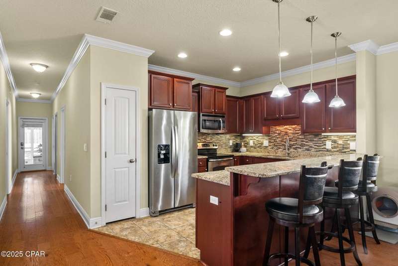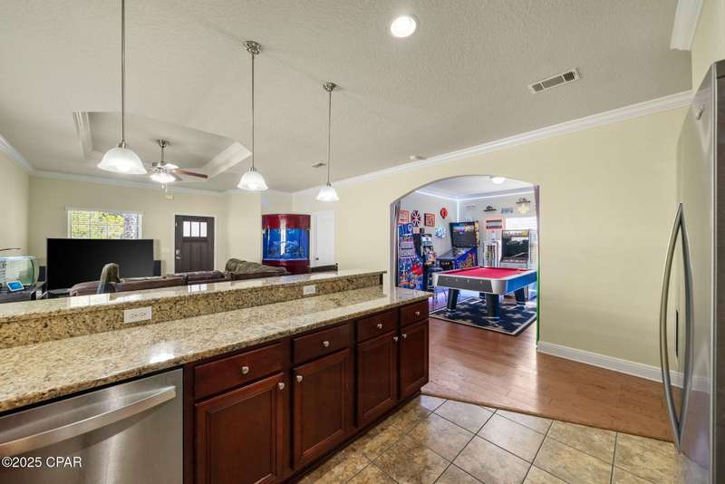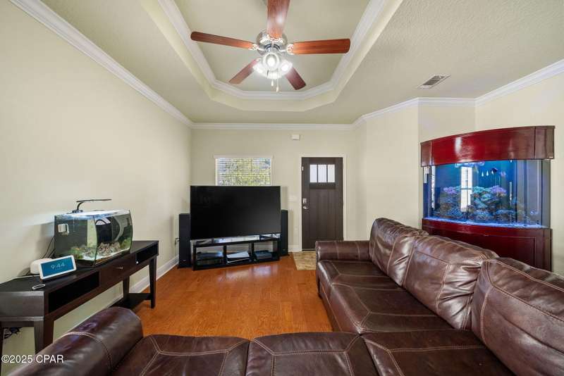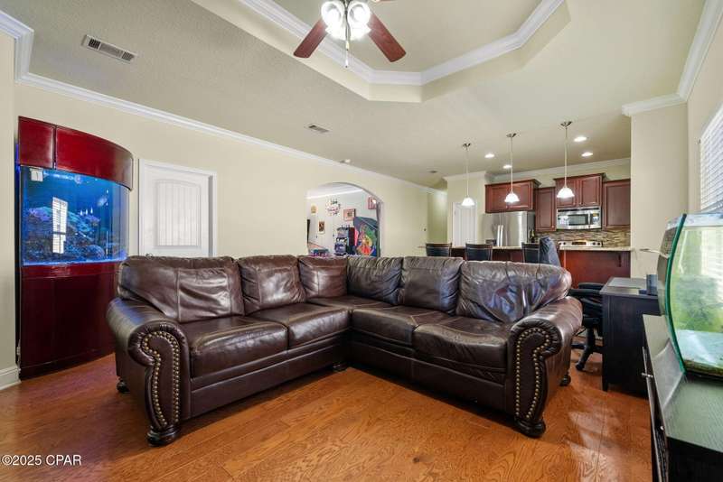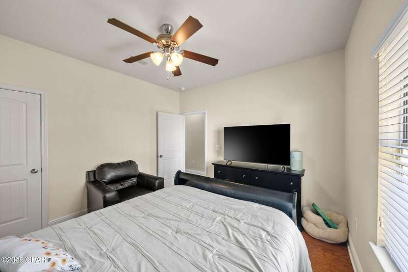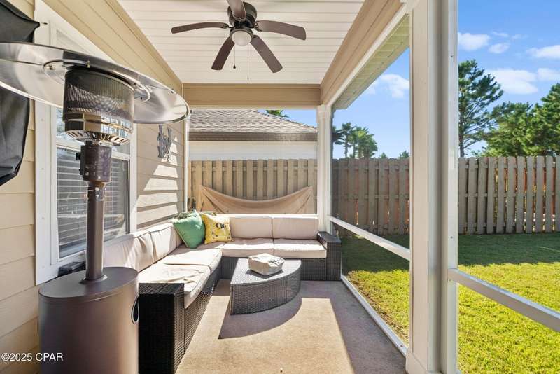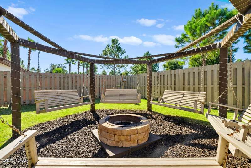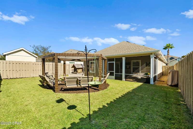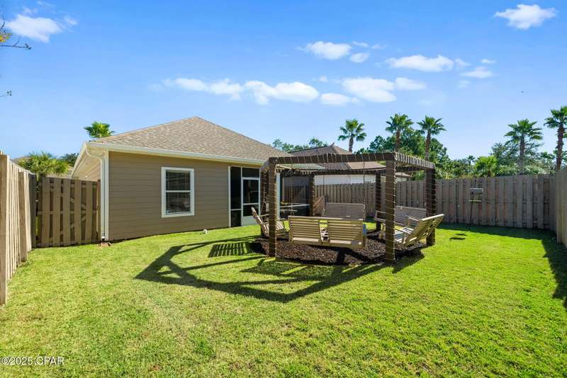 This charming 3-bedroom, 2-bathroom home offers coastal comfort and modern convenience in one of Panama City Beach's most desirable communities Turtle Cove on Lake Powell. Step inside to find an open and inviting layout, a spacious kitchen and living area, and a large laundry room leading to the 2-car garage. Enjoy year-round relaxation in the enclosed patio overlooking your private, fenced-in backyard, complete with a beautiful fire pit-perfect for cozy evenings or entertaining friends. This home features fully paid-off solar panels and an electric car charger, providing eco-friendly living with an average electric bill of only $29 per month. Turtle Cove at Lake Powell offers an unbeatable lifestyle with resort-style amenities including a clubhouse, Pickleball courts, swimming pool, fitness center, and a community dock for enjoying the water. The clubhouse can also be reserved for private events and gatherings, making it easy to host celebrations close to home.
