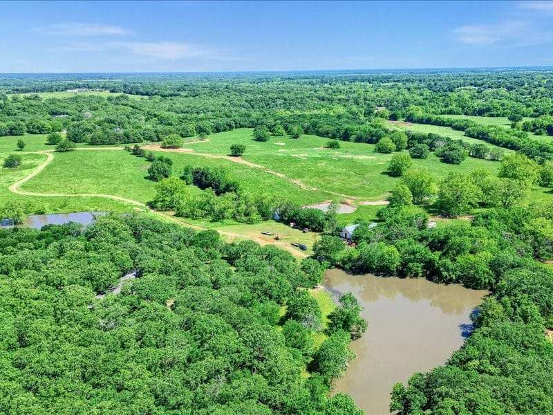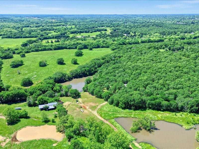 Nestled in serene seclusion, yet just 20 minutes from downtown Sherman, 8 minutes from downtown Denison, 20 minutes from Lake Texoma, and less than an hour from North Dallas. Discover an untouched paradise! Over fifty 150 year old paper shell, Burkett, and grafted native pecan trees welcome you to this serene untouched land of rolling hills that is truly one of the most breathtakingly beautiful pieces of land you will ever have opportunity to see. Property boasts five ponds with the largest pond being spring fed and stocked with largemouth bass, crappie, etc. In 2003 a 7lb largemouth bass delighted a visitor as he reeled it in, and in 2022 a largemouth bass was caught that weighed 6lbs. You can wander through over 30 heavily wooded acres discovering there are 2 creeks that run through the property. Deer, turkey, hogs, all types of critters are your neighbors. Wildlife abounds here, allowing the pleasure of observing many species of birds, including hawks, owls, geese, ducks, in their natural habitat. Located on one hilltop the owner recently unearthed a Model T wrench and assorted other antique items, including brass from shotgun shells dated back to 1901. The land is fenced and crossfenced into four separate pastures. There is a 30x40 two story utility barn with cement floor, a 14x30 utility shed on the side, and a 30x40 equipment shed on the back. There are three corrals, one of which contains a chute and headgate for working cattle. Water for livestock is piped into a cement water trough from the pond. This location has access to GCEC Electric and also TXU electricity. Starr Water Company is on the road. On the SW corner of the land is a tract of land where a Denison sewer lift station is located. Upon approval from the city of Denison you may also be permitted to connect to Denison city sewer. To Be Verified.