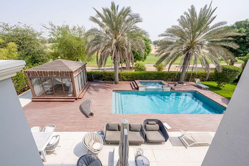Welcome to this A1 (the largest type) in the heart of Victory Heights! This stunning detached villa offers an unparalleled lifestyle, overlooking the lush greens of the golf course. Designed with modern elegance, this property stands out with its contemporary architecture and luxurious finishes, making it a true gem in the area. Step outside to discover a large pool, perfect for relaxation and entertaining, flanked by two magnificent palm trees that enhance the tropical ambiance. Imagine lounging by the pool, soaking in the sun, and enjoying the serene views of your surroundings. The spacious bedrooms each feature large balconies, providing the perfect vantage point to admire the picturesque golf course, gardens, and sparkling pool below. Additionally, they are all connected by the circular which also provides seamless integration between the different floors. At the centre of this hallway is a beautiful chandelier which can be admired throughout the house. This house is truly the envy of Carmen!