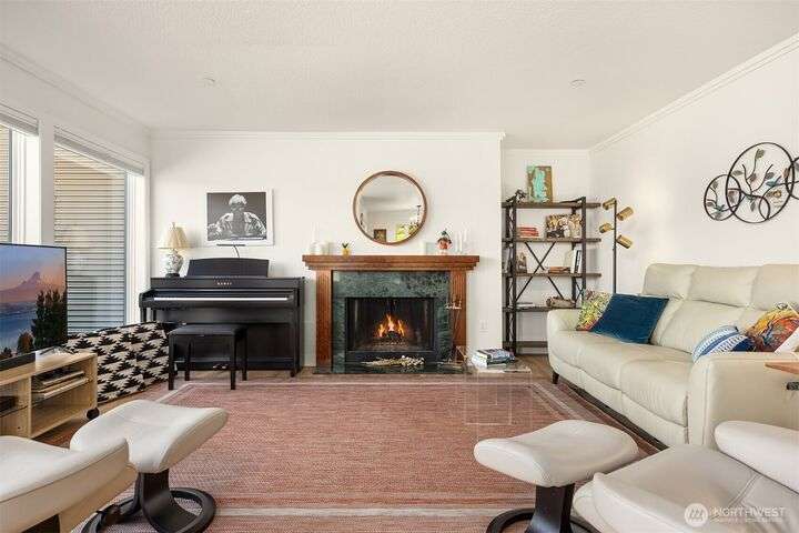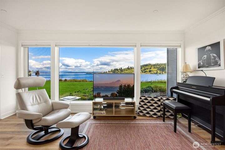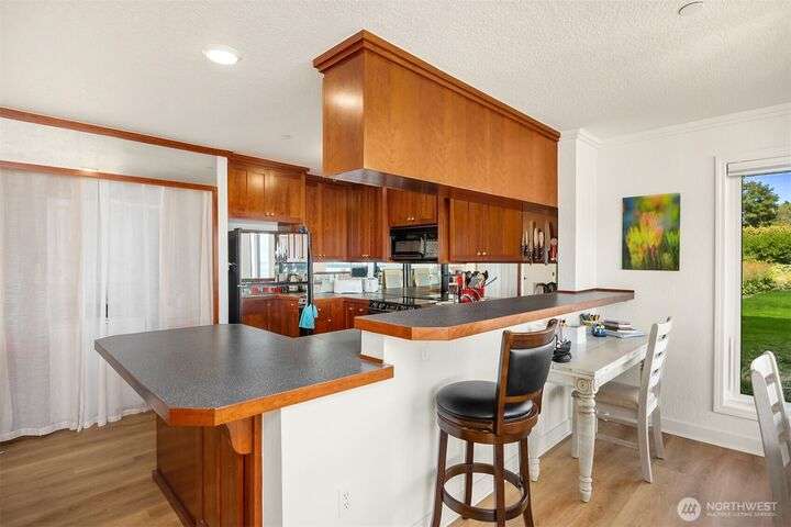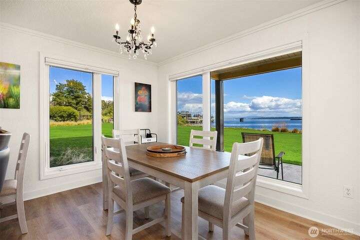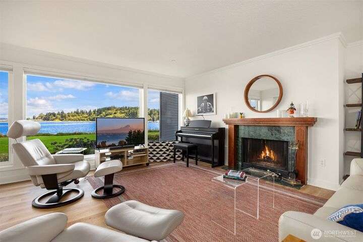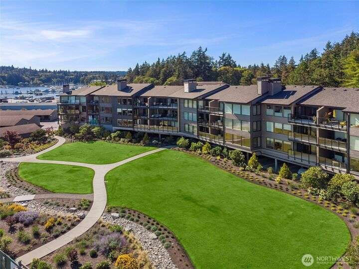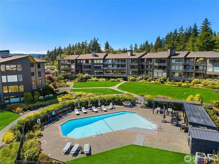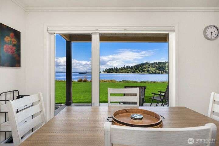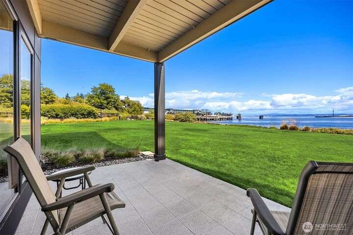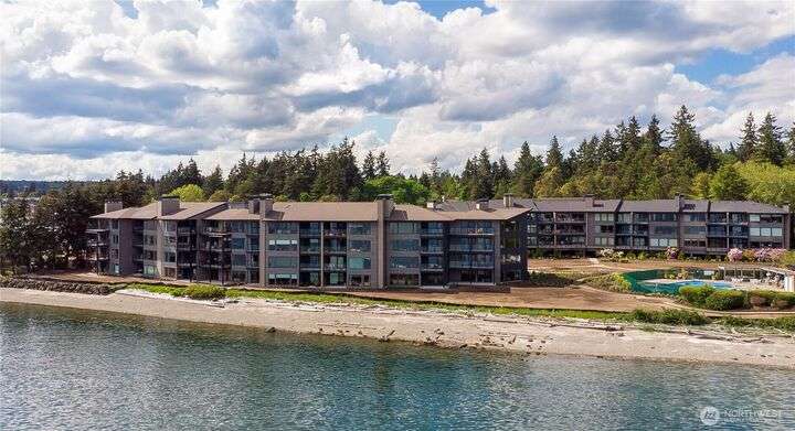Stunning panoramic views of Eagle Harbor and peaceful beachfront living. This ground level condominium is located just minutes from the Bainbridge Island ferry, downtown Winslow, and Waterfront Park. Watch the boats entering and departing the harbor with the Seattle skyline in the distance. Open floor plan with recent updates including remodeled baths, flooring, and interior finishes. Being on the ground floor, access to the pool and the luscious landscape are just outside your door. Two parking spaces, one covered and one uncovered. There are two storage rooms. One in the carport and a sizable storage room across the hall from the front door.