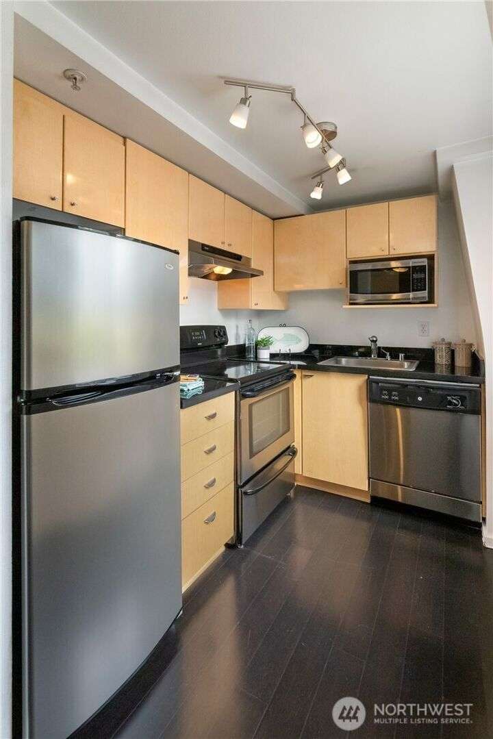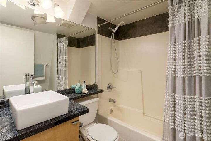 Top floor loft townhouse in the Montreux that has been tastefully updated! City living at it's best with walk score of 98 and transit score of 100! Sunny condo with granite counters, new carpet, 1.5 baths, 1 space parking in the garage, all in a well managed community. Building amenities include business center, fitness room, bike storage, amazing roof top deck with city, Needle and Elliott Bay views plus pets are welcome, no rental cap and short term rentals are allowed. Fully furnished Airbnb rental unit in one of the few city approved complexes in DT Seattle. This is the best value in Montreux with the lowest $/sq ft of all active and recently sold units!