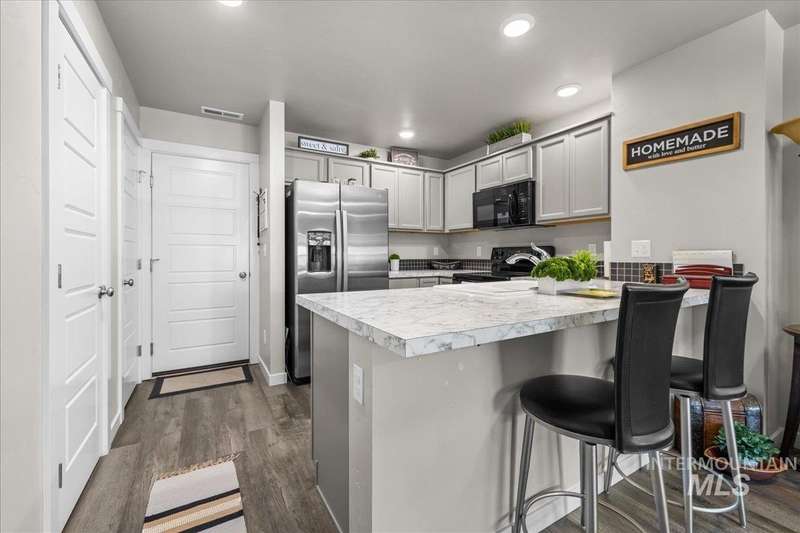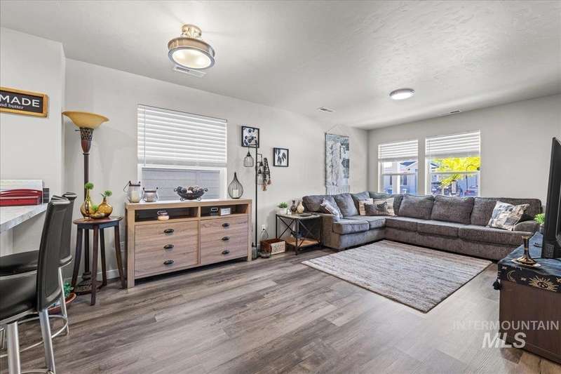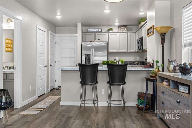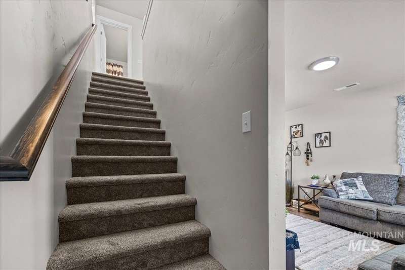 Ideal in both design & location, this exceptional home is practical comfort meets high-end convenience. Thoughtful details thru-out elevate the design, including durable LVP flooring, brushed-nickel fixtures, & timeless favorites like a breakfast bar, pantry, & walk-in closet. Large, strategically placed windows flood the home with natural light, creating a bright & airy atmosphere perfect for both everyday living & entertaining. Upstairs you will find two generously sized bedrooms, a well-appointed bathroom, & a conveniently located laundry area, adding to the home's practical layout. The exterior of the home is equally impressive, featuring a covered porch & sophisticated paint scheme, ensuring striking curb appeal that is sure to leave a lasting impression. The extended slab next to the garage provides extra parking & a patio space. This home also includes a Smart+Safe tech package, offering the latest in smart home technology for enhanced safety. Landscape maintenance & alley snow removal are both provided by the HOA for true low-maintenance living. Tucked away in a private, low-traffic neighborhood, this home offers excellent access to major shopping centers, medical facilities, I-84, & is just minutes from downtown Boise/BSU. It's an ideal setup for first-time homeowners, those looking to downsize, a second home close to the city, or as a rental investment opportunity.