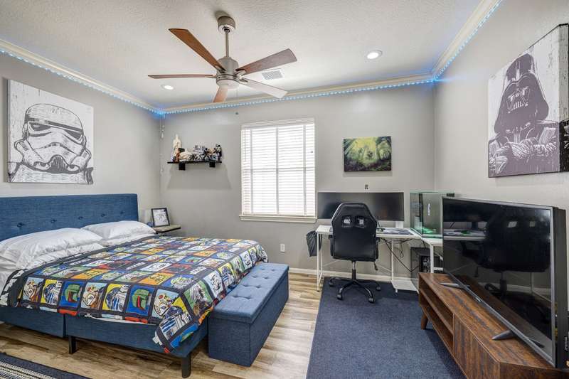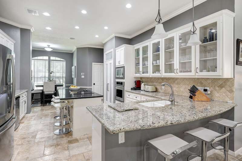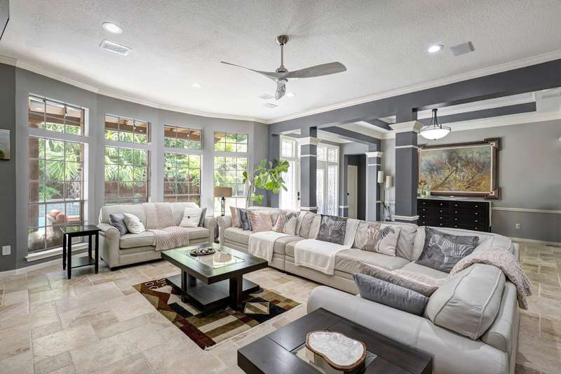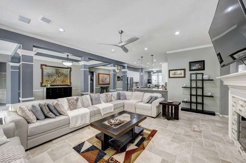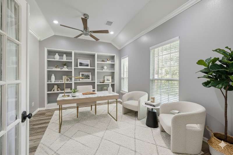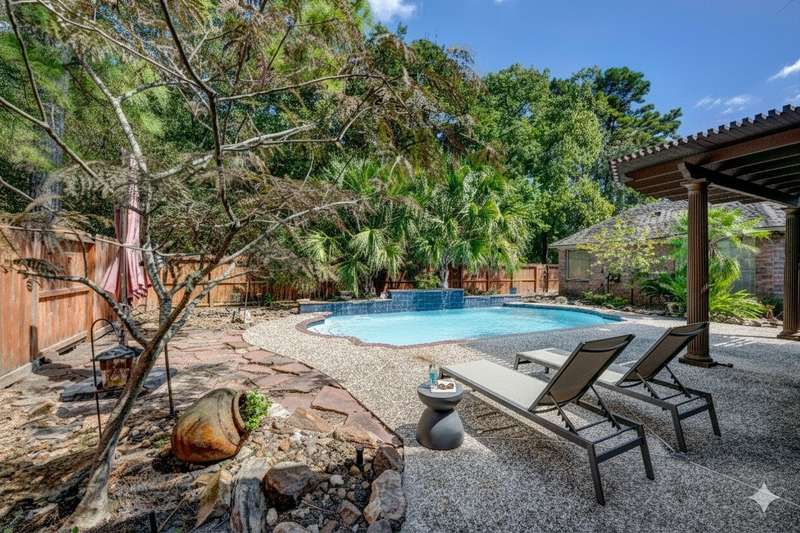 Welcome to this stunning home offering refined living space in highly desirable Kingwood! This exceptional property features an updated kitchen perfect for culinary enthusiasts and refreshed bathrooms, including a spa-like primary bath that serves as your personal retreat. Natural light fills the interior through the abundant windows, while high ceilings create an airy, spacious atmosphere. The double-sided fireplace adds warmth and elegance, serving as a focal point for entertaining. A dedicated office includes built-ins, and the welcoming entry sets an inviting tone the moment you arrive. Practical luxury abounds with no carpet, an epoxy garage floor, and a convenient sink in the garage! The home is generator-ready for peace of mind, while the lush landscaping creates a private outdoor oasis complete with a pool for relaxation and recreation. Pool was refreshed in October 2025 with new plaster, tile, and lights! All info per Seller.