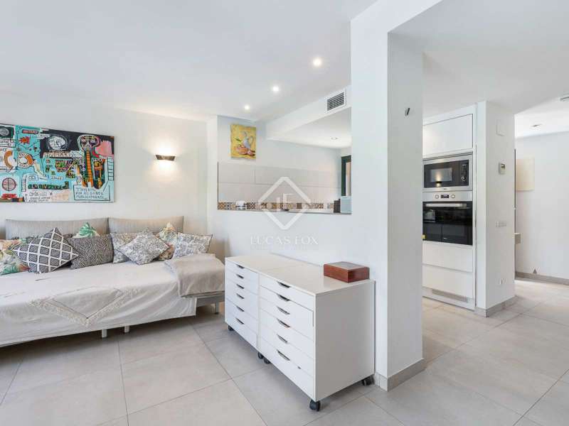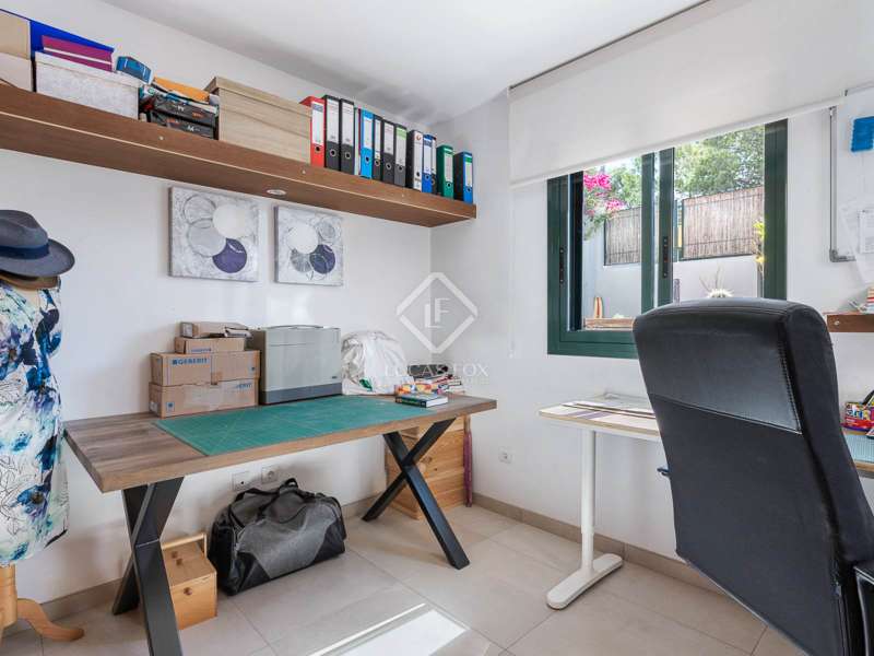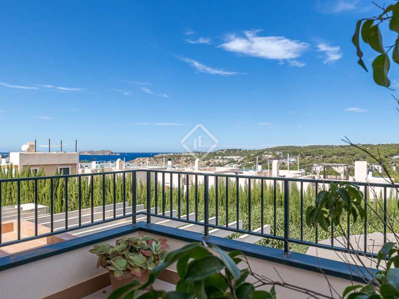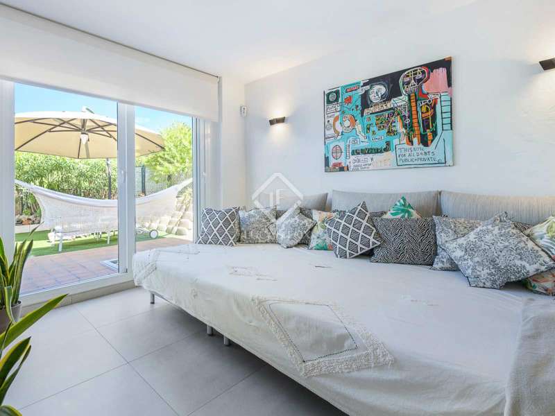 Lucas Fox offers this house located in a small residential development next to Cala Tarida. With a 99 sqm house divided into 2 floors plus a rooftop and a 65 sqm front garden, this property is perfect for families who want to spend the summers or all year here. With easy access, parking and all services nearby, it is an ideal place. Upon entering the house we find a bedroom, a bathroom, the kitchen open to the living room and access to the garden from which we can go to the community pool. Going up to the first floor we have 2 bedrooms, one of them the master with sea views and a second bathroom. From the master room and from the landing we access a terrace with views of the sea and the stairs that take us to the rooftop with everything you need to spend unforgettable evenings. In the basement the owner has built an apartment with one bedroom, a kitchen and bathroom and a huge storage and living area. They have separate entrances.