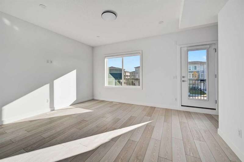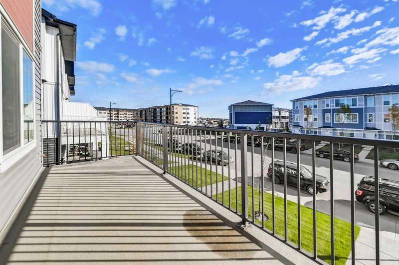 Stunning END UNIT 4-Bedroom 2.5 Bath Attached Garage Townhouse. A low-maintenance designer lifestyle, this home features low condo fees and is just 20 minutes from downtown Calgary & 5 minutes from the newest Costco. Spread across three levels, this townhome offers ample space with an open-concept design on the main floor. Enjoy the bright, airy atmosphere created by large windows and sleek vinyl flooring throughout the living and dining areas with designer light. Gourmet Kitchen & Generous Living Room - The central kitchen is a chef’s delight, boasting quartz countertops, a stylish tile backsplash, a central island, dual sink, and high-end stainless steel appliances, including an electric stove, dishwasher, full height cabinets, large windows & high ceilings. Outdoor Entertaining - Step out from the living room onto a large front balcony/deck, complete with a gas line for grilling, perfect for outdoor gatherings and relaxation. Comfortable Living - The 3rd floor is dedicated to your comfort with a spacious primary suite featuring an ensuite bathroom and a walk-in closet, alongside two additional well-sized bedrooms sharing a second full bathroom. A conveniently located laundry room with a full-sized Whirlpool washer and dryer completes this level. The versatile lower level offers a flexible space that can be used as an additional bedroom or home office. It also includes an attached double garage with ample storage and a mechanical room/ storage room. Modern Conveniences - Equipped with a heat recovery ventilation (HRV) unit for optimal indoor air quality. Convenient Access - Just a few blocks from Walmart, Costco, and a variety of other retail shops, amenities, and dining options in nearby. Easy access to schools, parks, and local amenities. Master-Planned Community - Part of the award-winning Truman-developed Aberdeen Towns, this 316-acre community along the shores of Chestermere Lake promises year-round lakeside living with future additions including new schools, parks, and lifestyle amenities. This beautifully appointed townhome offers everything you need for a comfortable and enjoyable lifestyle. Contact your realtor today to schedule a viewing and see for yourself why this home is the perfect fit for you! Reasons to Buy: - Spacious 4-bedroom, 3.5-bathroom layout - Low condo fees and modern amenities - Close proximity to major retail stores and downtown Calgary -
