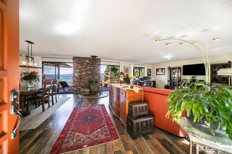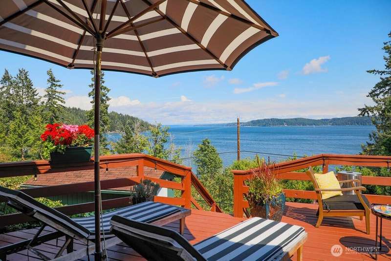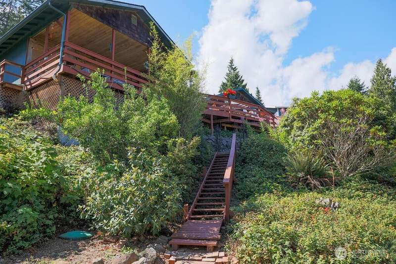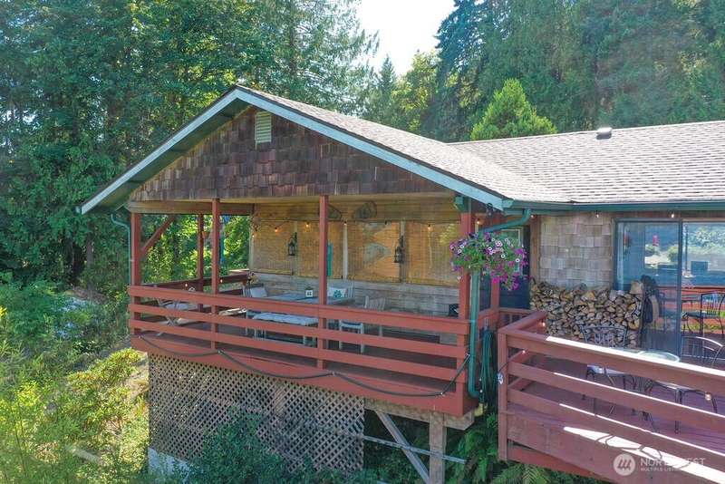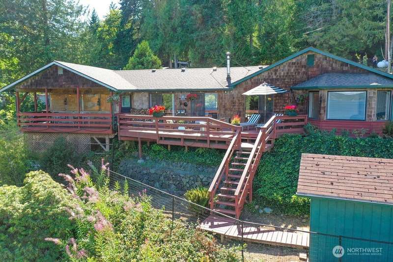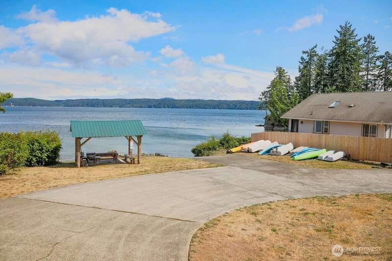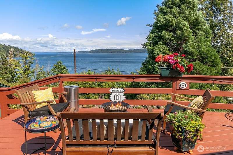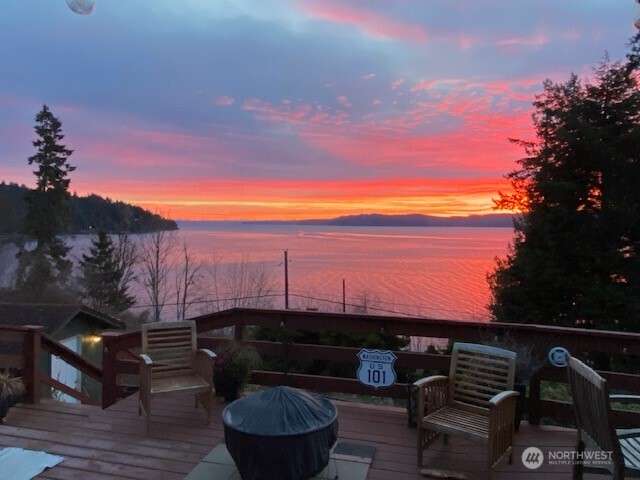 Expansive Views of the Beautiful Hood Canal are yours from this Well-maintained home. This home features 2 Primary suites with attached full baths. Lovely water views from the front Primary suite, water views from the dining area, Spacious open living room with a bank of windows frame the amazing water views! Open floor plan allows for easy living & entertaining. Nice kitchen with plenty of storage. Massive entertainment deck, with endless water and wildlife views and Majestic Sun Rises. One car garage, Carport area for your toys. Gorgeous Mature rare Sequoia Tree in your backyard. Community beach, with Oysters & Clams; where you can launch small boats and kayaks.