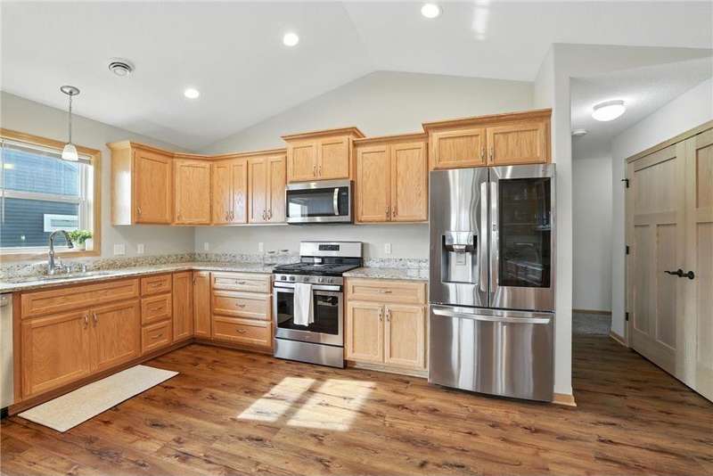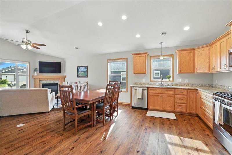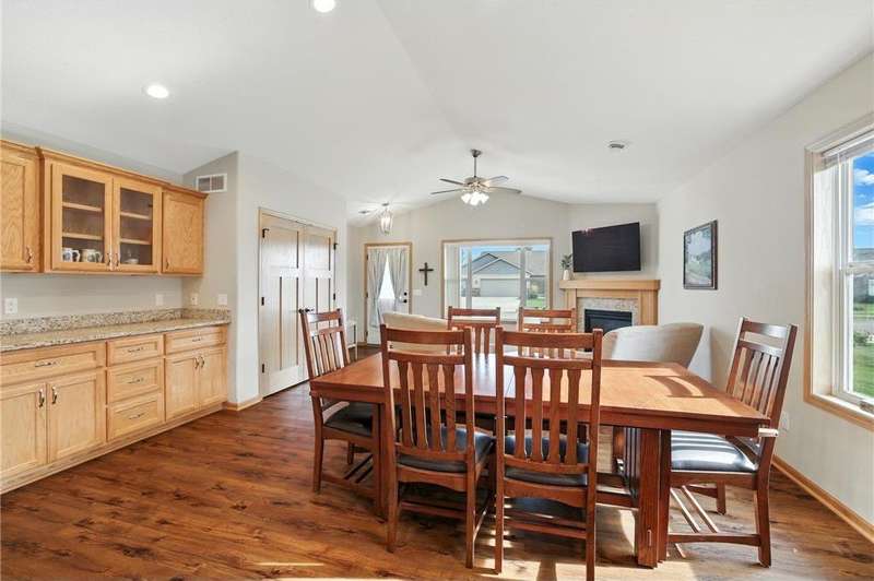 Experience the ease and comfort of single-level living in this beautifully designed 3-bedroom, 2-bath patio home built in 2019. Step inside to vaulted ceilings, a living room with a cozy gas fireplace, a large kitchen featuring custom cabinetry, granite countertops, a built-in buffet, and large French door pantry closet. The private primary suite includes a massive walk-in closet and private bath. Additional bedrooms provide space for guests and a home office. Features solid oak doors throughout and extra linen closets and storage cabinets. Enjoy a covered front porch, large concrete driveway, fenced in backyard, lawn sprinkler & an extra-deep finished and insulated garage. A great place to call home and to start a new chapter. Schedule a showing today!