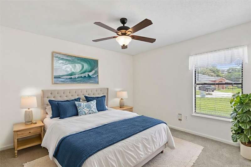 Located just 7 miles from the BEACH and move-in ready, this well-maintained home sits on an expansive interior corner lot in a sought-after community with low-HOA and no CDD fees. Boasting 3 Bedrooms, 2 Baths PLUS a separate office/den and over 2,100 sqft of open living space, this home truly offers both comfort and functionality. Inside, youll find a welcoming formal dining room, cozy fireplace, and French doors that lead to a spacious Florida room overlooking the fenced backyard. The courtyard-entry garage adds great curb appeal, and the nearly quarter acre lot provides plenty of space to enjoy outdoor living. Other great features include fresh landscaping, irrigation, large laundry room, 1 Year Home Warranty, and a spacious kitchen that offers a breakfast bar, appliances and plenty of cabinet/counter space! Located in a highly desirable area near A-rated schools, great shopping, local dining, and recreation?this home offers the space you want in the location you need.