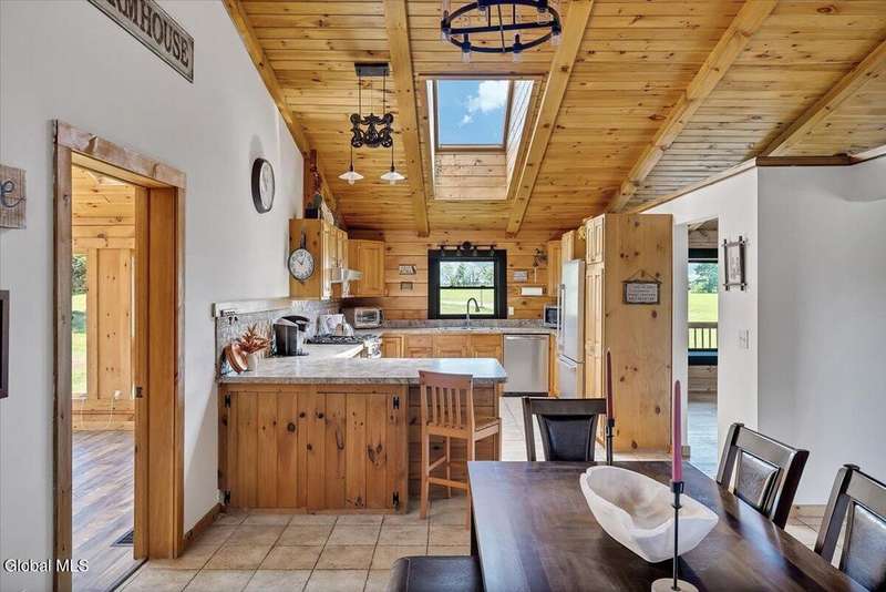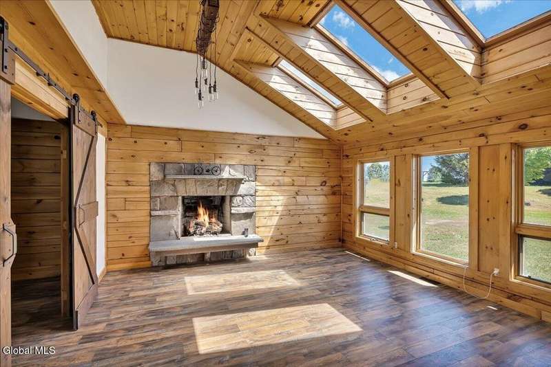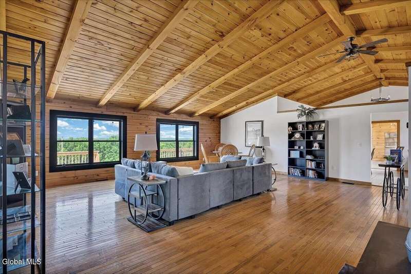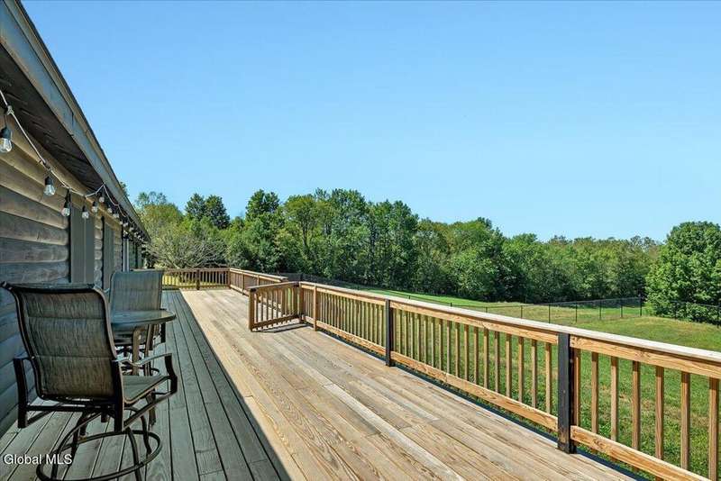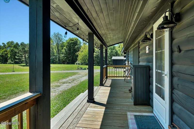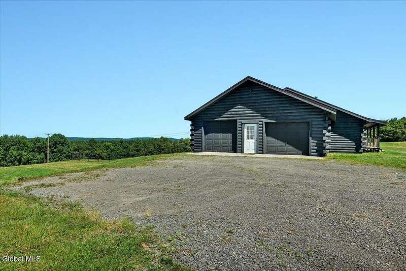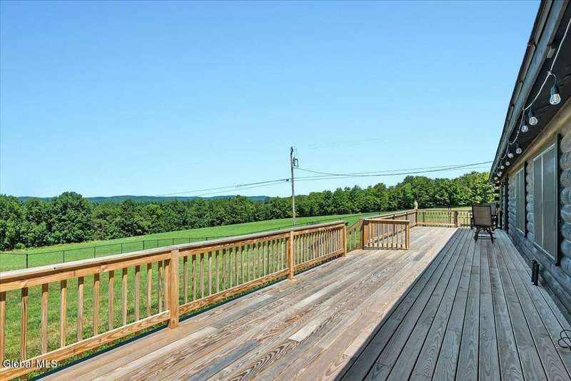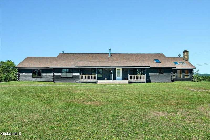 New Price! Up a winding gravel drive, cresting the hill, you pass beneath a handcrafted log arch ? the kind that signals you've arrived somewhere special.Beyond it, 18.54 acres of meadow and woodland unfold, with a striking black-stained Lincoln Log home standing watch over panoramicmountain views.This 3,000? sq. ft. custom ranch was built for both gathering and retreat, with soaring 13' pine-plank cathedral ceilings, hardwood floors, and an open, airy flow. The 29' chef's kitchen with walk-in pantry is a dream for entertaining, connecting seamlessly to the dining room, family room with stone propane fireplace, and a dramatic 28' x 28' living room centered around a custom woodstove.The primary suite offers sunset views from its private deck and a spa-like ensuite and walk-in closet. Two additional bedrooms, a bright office/library, and first-floor laundry add comfort and convenience.For lifestyle and leisure, the lower level features a movie theater, while multiple garages ? attached and detached. ? provide space forevery pursuit.Step outside to expansive porches, decks, and boundless skies, or wander just minutes to Clapper State Forest, where 818 acres and miles of trails await. Only an hour to Albany and three to NYC, this Yellowstone-inspired retreat offers a cinematic blend of rugged beauty, privacy, andtimeless log-home character. This home is offered fully furnished for a seamless move-in experience. Enjoy three brand-new beds, plus a fourth bed that is only four years old and very lightly used. Each bedroom features antique dressers and lamps, adding warmth and character throughout. The versatile 4th bedroom is currently set up as a bedroom but could easily serve as a spacious home office.The kitchen includes a newly added "country-style" dining table with seating for six. An additional dining area just off the kitchen is soon to be furnished with a second table, creating a dedicated dining room option.ALL Dishes, (big/small plates, bowls, etc.), microwave, toaster, toaster oven, silverware, pots, pans, coffee maker + Keurig coffee maker, coffee cups, bath and small towels, wash cloths, new shampoos + liquid soaps in both baths, bath mats, extra locust logs for indoor wood stove, (locust great for wood stoves), etc. just close one day and the next stay there as everything there for new homeownerNew sectional couch, end tables and lamps, bookcase, in large living/great roomNew tesla 220 Amp charging in garage + new garage door overhead opener/motor/unitDecks completely re-built 3-4 years ago...would stain for additional cost if requested as have a home improvement companyHouse built by high quality custom log home builder 40+ years ago with no nails, built old school and thick logs so heat and AC work great to keep cold and heat outnew $40,000 Marvin windows, + all appliances, new completely re-done bathrooms with both walk in showers, knotty pine interior walls and ceilingprofessionally cleaned, new ceiling fans with lights, all the aforementioned new 3-4 years ago.New large aluminum fence professionally installed...will never rot, no wooden posts...in 2025...124 x 150...large gate to get mower/ tractor in...was roughly $9,000.A note from the seller in the disclosures as to why he is reluctantly is selling his dream log home.