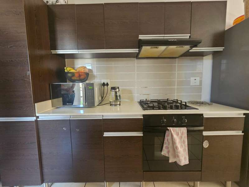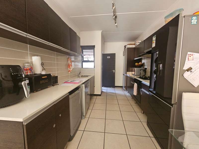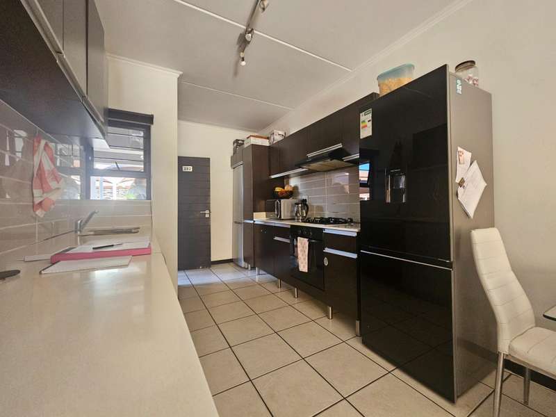 Modern Ground-Floor 3 Bedroom Apartment with Private Garden. This stylish ground-floor apartment offers the perfect blend of comfort and convenience. Featuring three well-sized bedrooms and two bathrooms, the main bedroom includes a private en-suite with a shower, basin, and toilet, while the second and third bedrooms share a full family bathroom. The modern open-plan kitchen is finished with sleek Caesarstone countertops, a gas hob, and an under-counter oven. Appliances?Çöincluding a fridge, washing machine, and dryer?Çöare included in the sale for added value. The spacious living area accommodates both lounge and dining spaces, opening seamlessly to a covered patio and private garden, ideal for entertaining or relaxing. Residents enjoy exceptional amenities, including 24/7 security, a sparkling swimming pool, communal braai area, outdoor gym, children?ÇÖs play areas, and backup water supply for peace of mind. Conveniently located close to shopping centres, popular schools, major highways, and essential amenities. ?ƒô? To arrange a viewing, contact Irene today.