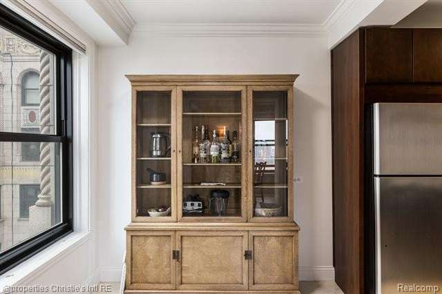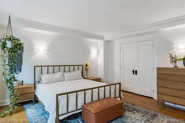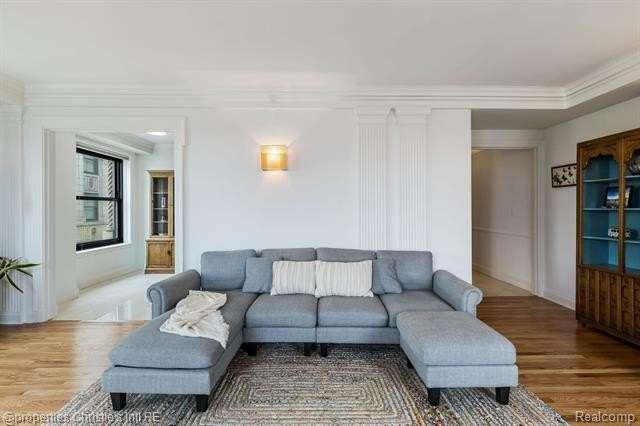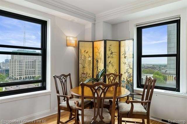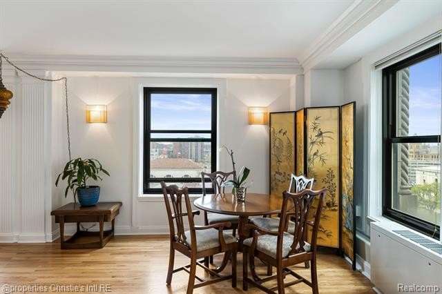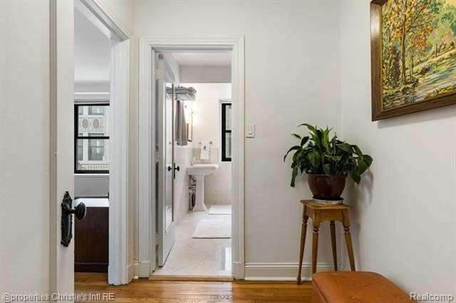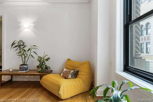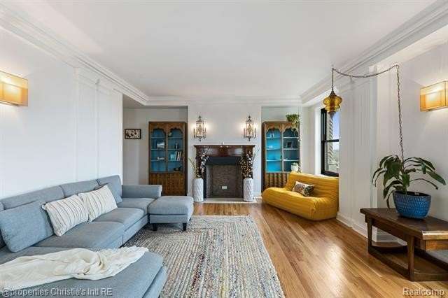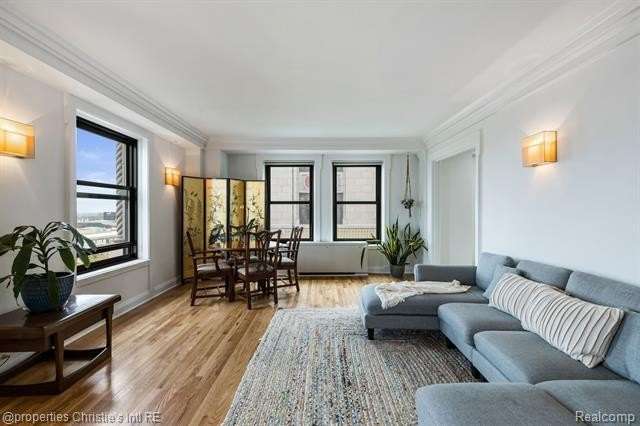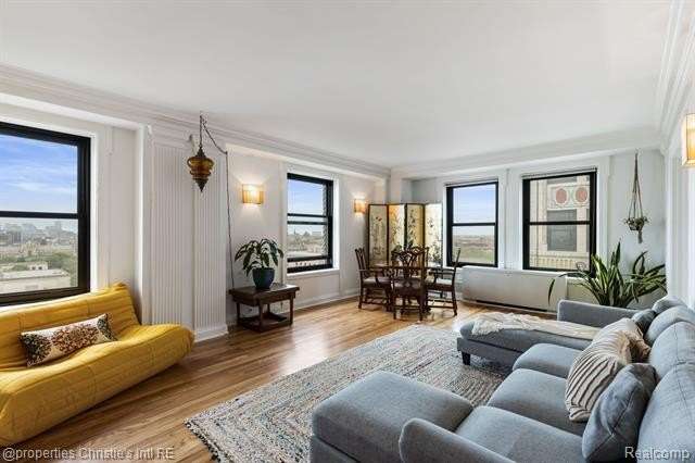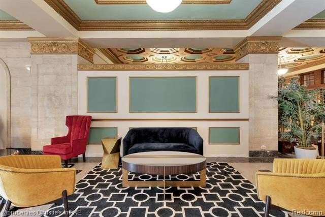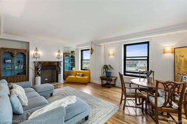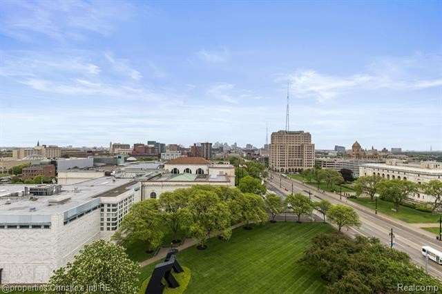 Park Shelton Condominiums- iconic historic high rise in the heart of Detroit's cultural district. This eastern corner 11th floor overlooks the Detroit skyline and the Detroit Institute of Arts. 2 bedroom, 2 bath unit will be sold with 2 deeded covered parking spaces. NEZ Homestead taxes currently in place and can be transferred to new Buyer that makes the residence their primary homestead. Updated marble flooring throughout the main entry, with marble flooring primary and guest full baths. New hardwood flooring throughout main living room area, faux fireplace with custom wood detailed mantel. Custom plaster details, updated lighting. New windows throughout. Large primary bedroom with 6x9ft walk-in closet with plumbing access. Guest bath has updated marble shower with in unit all-in one laundry and storage. Community Features Include: Rooftop terrace with seating & outdoor grills, plus interior kitchen prep area, community workout room with sauna, community laundry with pick up services(for additional costs)- 24/7 serviced entry. Monthly HOA covers all utilities plus internet and parking for the 2 spaces. There is a monthly assessment also included in the monthly fee. Reach out to LA for breakdown.