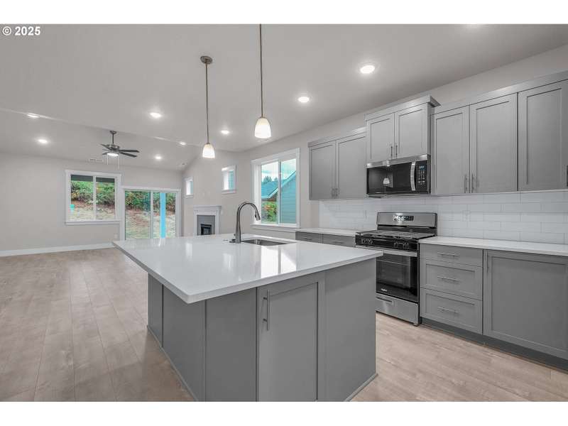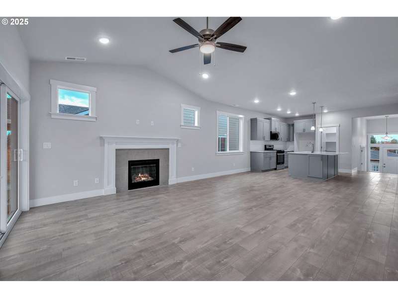 Make your move to Elk Ridge Estates and the luxury, quality and comfort of expertly crafted living by Black Hawk Homes. This highly desirable home offers a three-car garage and spans 2,248 square feet, all on a single level. Plenty of flexibility with four bedrooms and a spacious bonus room that can serve as a fifth bedroom/media room/playroom/or home office. The heart of the home is the great room that features a dramatic vaulted ceiling and a gas fireplace, creating a perfect environment for gatherings. The dining area has a slider that opens onto a covered patio, ideal for outdoor entertaining. The chef-inspired kitchen is centered around a stylish island with quartz countertops, stainless steel appliances including a gas range, and a pantry for extra storage. The vaulted primary bedroom is accented with elegant double doors, a ceiling fan, a walk-in closet, and a stunning ensuite bathroom that boasts a dual vanity, deep soaking tub and an oversized step-in shower. The conveniently located utility room with built-in features adds practicality, while energy-efficient gas heating and hot water ensure comfort year-round. The front yard is landscaped and equipped with sprinklers for easy maintenance.