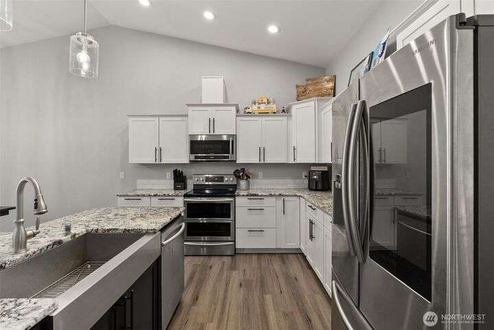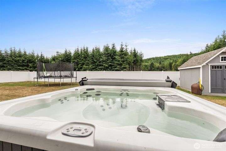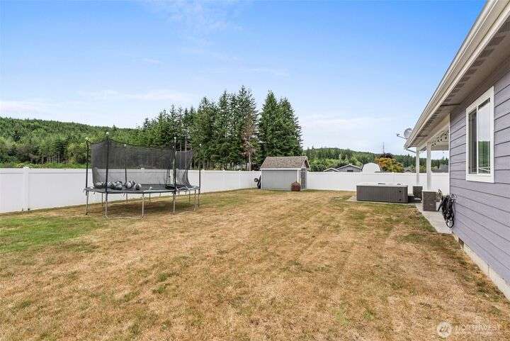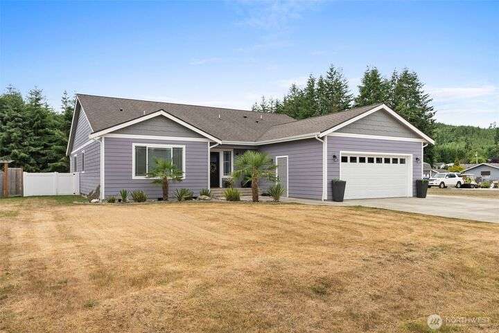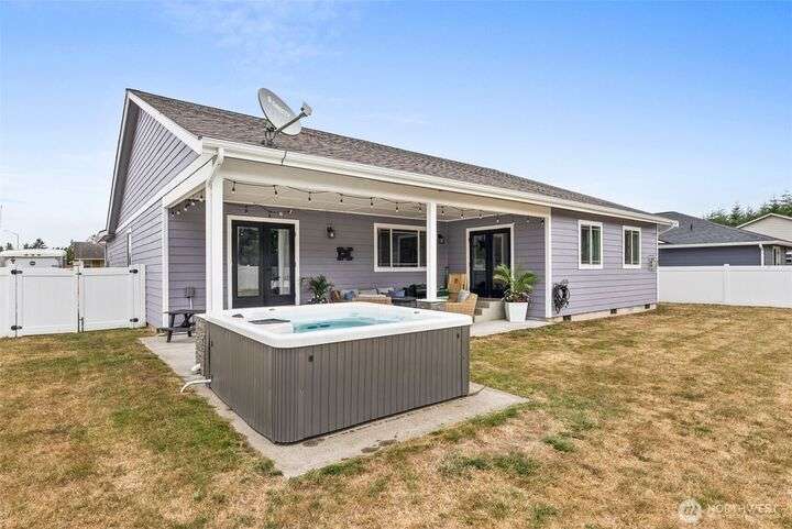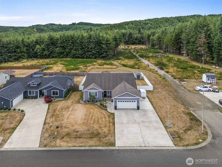Beautiful 3BD/2BA in sought-after Paisley Creek neighborhood of Cosmopolis! Built in 2018, this single-level home features vaulted ceilings, open-concept living, and a gorgeous kitchen with quartz counters, stainless appliances, and a large island. A cozy propane fireplace anchors the living room, while the spacious primary suite offers a walk-in closet and spa-like bath. Relax year-round on the covered patio with hot tub, opening to peaceful forest views. Fully fenced backyard, oversized driveway, 2-car garage, and storage shed add convenience. Close to schools, parks, and just minutes from Highland Golf Course—only 1 hour to Olympia and 30 minutes to ocean beaches! Lovingly maintained and ready for its next chapter.