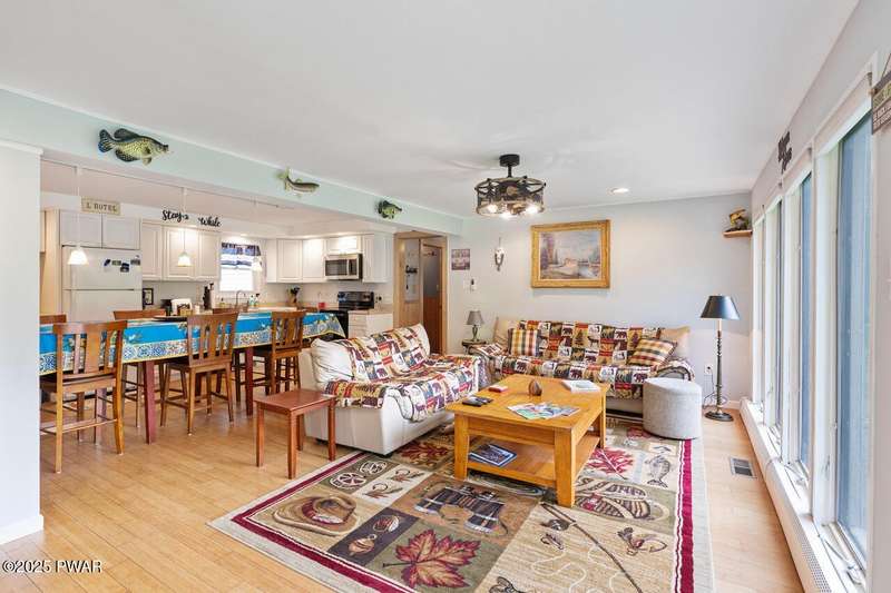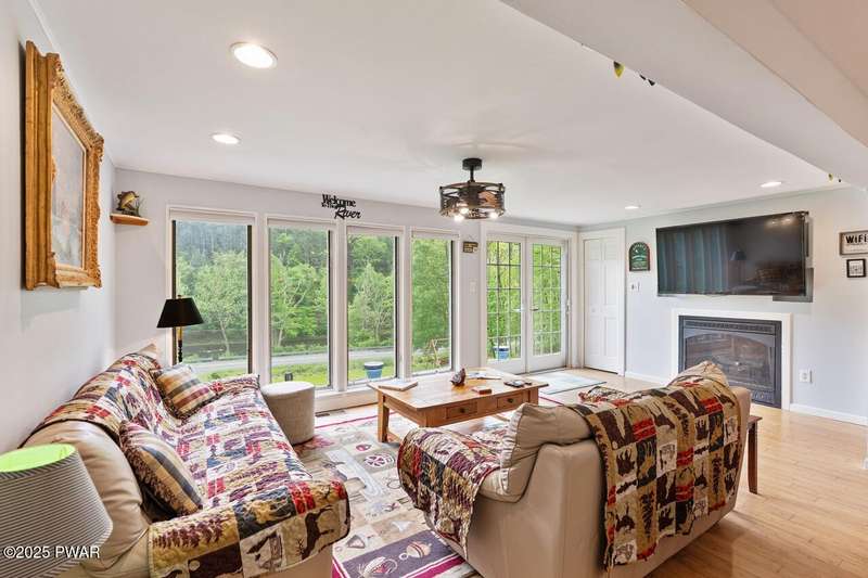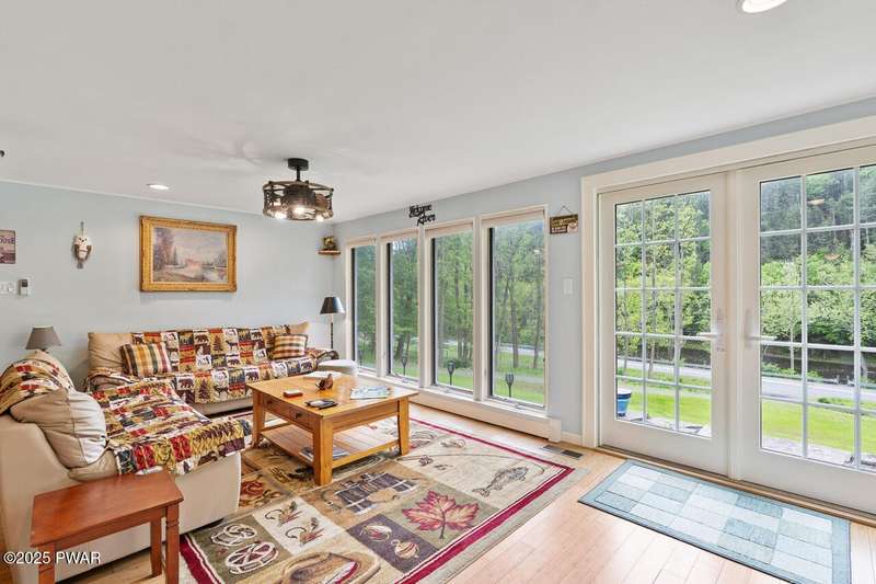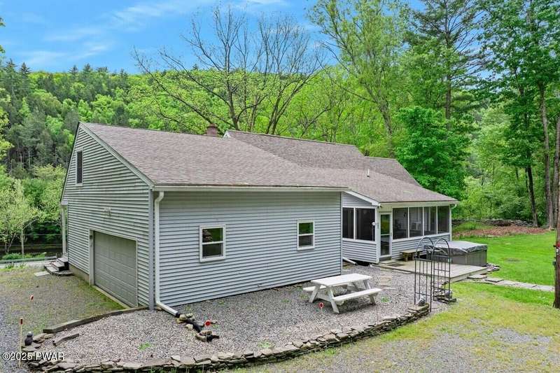 Welcome to your LACKAWAXEN RIVER FRONT (with deeded ownership of 218 feet of frontage along the riverbank), where the views are stunning, the river access is directly in front of your home, and the lifestyle is relaxed and easy. This fully updated four-bedroom, two-bathroom riverfront home offers a perfect mix of comfort, space, and opportunity, whether you're looking for a full-time residence, a weekend escape, or a short-term rental/Airbnb with great income potential. (Home has recently been granted full Short-Term Rental permits)Inside, the open kitchen, living, and dining area creates a welcoming space for entertaining or simply enjoying quiet time at home. The enclosed porch/sunroom offers peaceful views of the scenic backyard, and the hot tub is ready for evening soaks under the stars. FURNITURE INCLUDED!There are two bedrooms conveniently located on the main level, with two more upstairs and a spacious game room complete with a pool table for indoor fun. A large unfinished basement provides plenty of storage, and the two-car garage adds even more practicality.Step outside to enjoy a grassy yard, mature trees, a sense of privacy that is hard to find, and the incredible sights and sounds of the Lackawaxen River. Whether you are fishing, kayaking, or just relaxing by the water, your own river access makes it all possible.Located in a quiet and scenic area with short-term rentals permitted, this home is a rare find that combines beauty, functionality, and flexibility for any lifestyle.