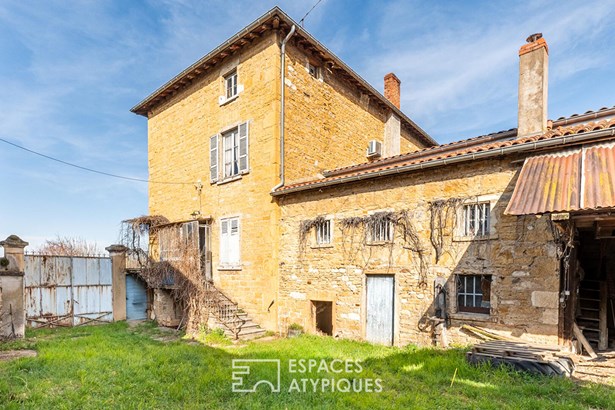 Located near the center of Lissieu, in the Montluzin district and 20 minutes from Lyon, this old house, in golden stones and registered as a Heritage Site, is located on several plots totaling 1100m2. With its 230m2 of possible living space, this house to renovate allows any work enthusiast to express their creativity in a favorite project. The interior can very easily be defined in several spaces. The ground floor, for the day part, offers a clear view of the neighboring agricultural land as well as a kitchen, a large living room and a dining room for a total of 70m2. The two floors, for the night part, are divided into 4 or 5 bedrooms with their bathrooms. The large volumes of the first level as well as the undeniable character of the top floor with its exposed framework bring the interior character. An outbuilding allows the development of a 15m2 studio for guests or family. For the exteriors, a double garage is possible from the entrance with its roof terrace, allowing a real extension of the living spaces of the house. The whole allows access to a space where a swimming pool and its terrace would benefit from constant light. All taking place on a plot of 500m2; another plot of land, facing the house, of 600m2, is included in the sale in order to guarantee outdoor parking and additional green spaces. A magnificent vaulted cellar of 80m2 completes this set. The undeniable character of this property, the unequivocal potential in the sector and the privileged location close to motorway access are the undeniable assets of this favorite property to come and visit. A complete renovation project by architect was tailor-made in order to best support the buyers of this unique product. DPE to come Contact: Nicolas - 06 62 92 87 35