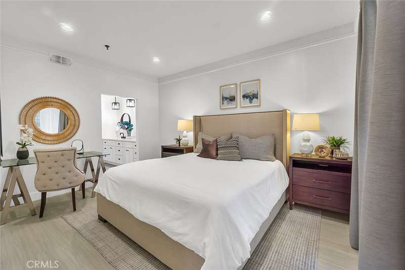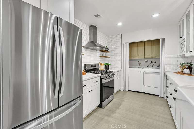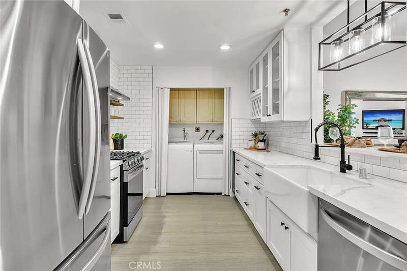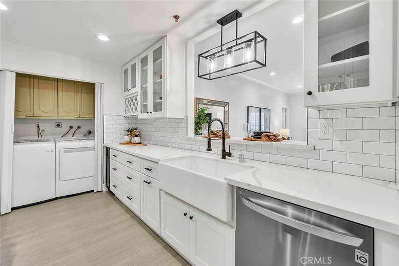 Charming Garden Grove Condo! Located in the desirable gated community of Greenbrier Terrace, this single-level 2-bedroom, 2-bathroom home offers 1,057 square feet of comfortable living space and is truly move-in ready. Enjoy access to resort-style amenities, including a heated pool and spa. Step inside to find smooth-finish walls, LED recessed lighting, and a bright, open layout that seamlessly connects the dining and family rooms. The spacious kitchen is thoughtfully appointed with a white subway tile backsplash, quartz countertops, newer stainless steel appliances, a gas stove, deep pantry, and a pass-through window to the living area--perfect for entertaining. A laundry area with an electric dryer is conveniently located just off the kitchen. The primary bedroom is generous in size and features a large walk-in closet, double-sink vanity, and a spacious shower area. The second bedroom is ideally situated on the opposite side of the condo, adjacent to the updated hall bathroom, which includes a new, larger vanity. Additional highlights include central HVAC, private covered parking, and a detached 2-car garage with extra storage. The home also offers a high level of privacy, both indoors and out, and includes a private patio for relaxing or entertaining. Don't miss this opportunity to own a beautifully maintained home in a tranquil community, close to local shopping, dining, and freeway access!