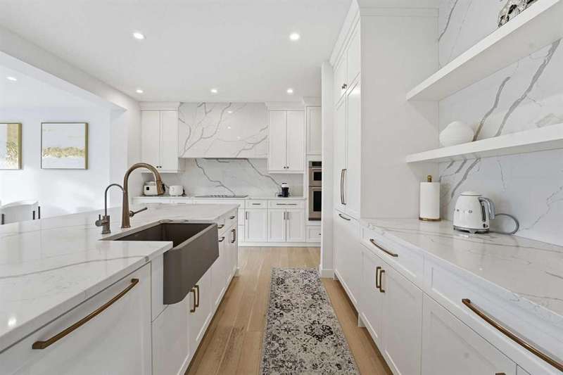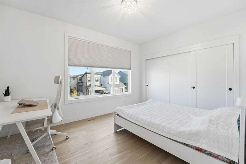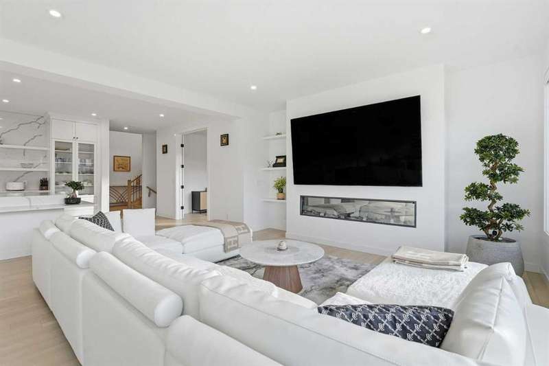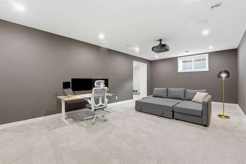Welcome to this breathtaking luxury estate home in the prestigious community of Rockland Park, where sophisticated design meets modern elegance. The Lucca Model built by Brookfield offers over 3,100 sq. ft. above grade and more than 4,500 sq. ft. of total developed living space, this residence offers a rare combination of grand scale, refined finishes, and serene natural surroundings. Step inside to a massive main living area that exudes a sleek Miami-inspired aesthetic, featuring full marble countertops and backsplash, a state-of-the-art chef’s kitchen, and expansive windows that flood the home with natural light. The open-concept layout flows effortlessly into a spacious dining area that opens onto a full-width deck, perfect for entertaining or relaxing while taking in the lush greenery beyond. Light up your nights with the Gemstone lighting. Upstairs, you’ll find three large bedrooms, including a luxurious primary retreat, along with an open-to-below bonus room that adds architectural drama and brightness to the upper level. The fully developed basement continues to impress with an additional bedroom and bathroom, a versatile flex room or home gym, and a recreation / movie room—the ideal setup for family fun or hosting guests. Backing onto a beautiful greenspace with direct access to the Bow River pathways, this home offers peace, privacy, and proximity to nature while being just minutes from all the amenities that make Rockland Park one of Calgary’s most sought-after communities. Residents of Rockland Park enjoy exclusive access to an incredible community center featuring an outdoor pool, hot tub, sport courts, playground, and gathering spaces—all designed to enhance the vibrant lifestyle this community is known for. Experience elevated living in a home that truly has it all—style, space, and sophistication.