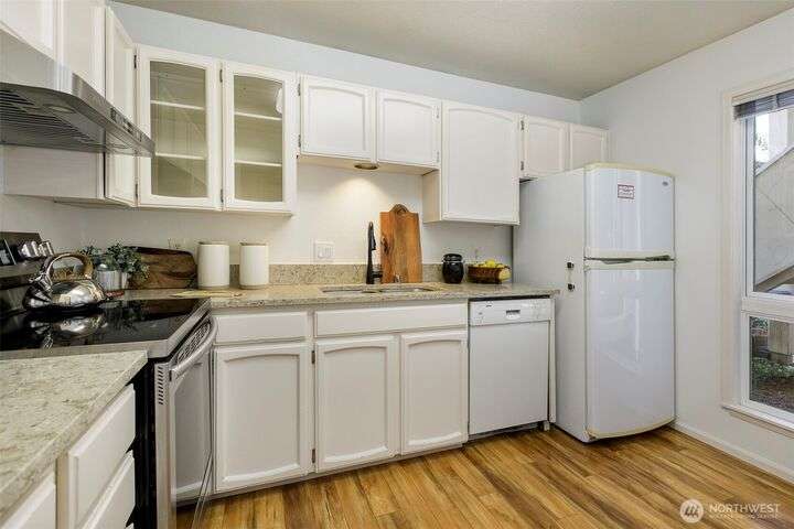 New incredible price!!! Prime downtown Bellevue location,easy access to shopping & dining,blocks from Bellevue Square.Spacious 1176 SF nicely updated 2 beds/2 baths.Home features open layout w/generous living space,cozy wood-burning fireplace,white kitchen w/granite counters.Private covered patio,in serene setting at back yard. n-unit laundry room w/full size washer dryer.Fresh paint & newer vinyl windows.Sleek bthrm remodel.Built-ins in primary closets.Dedicated carport parking spot & storage.Ample guest parking.Enjoy community clubhouse,outdoor pool & hot tub.Bellevue Farmers Market just out of the complex.Top-rated schools,Clyde Hill Elem, hinook &Bellevue High.Easy access to I-405, 520 & public transit.NO RENTAL CAP, strong association.