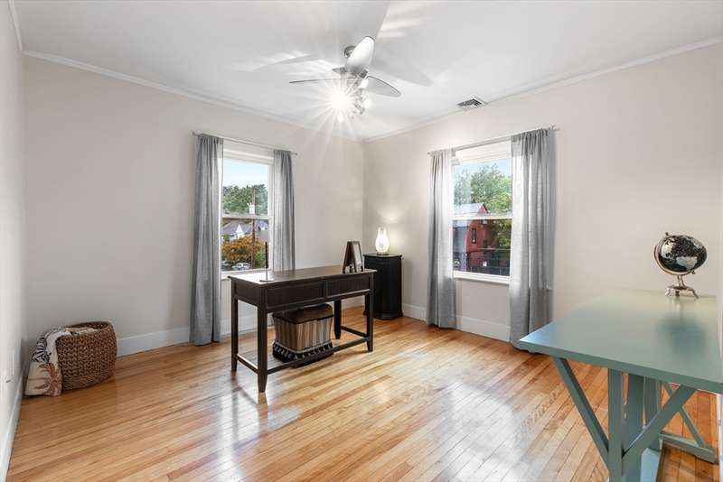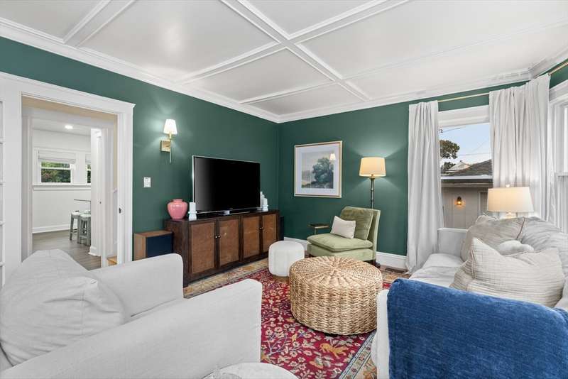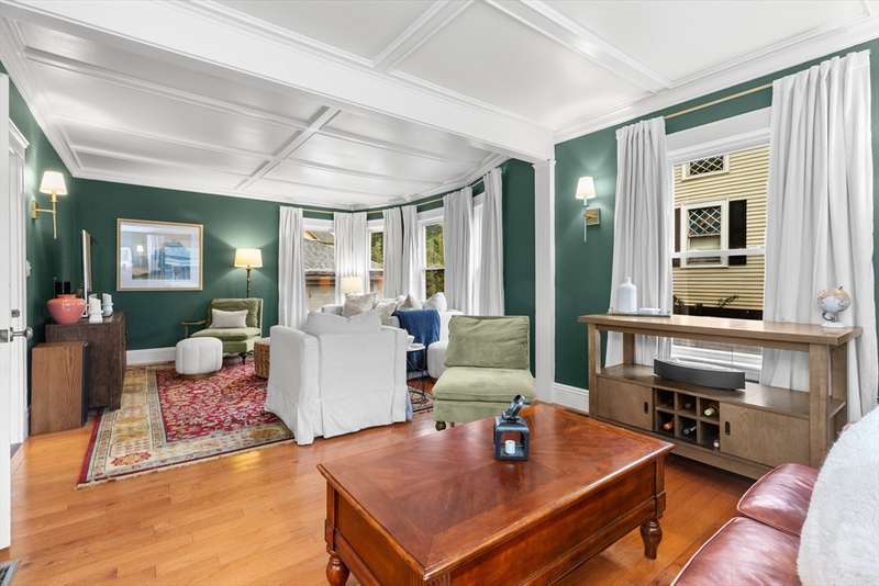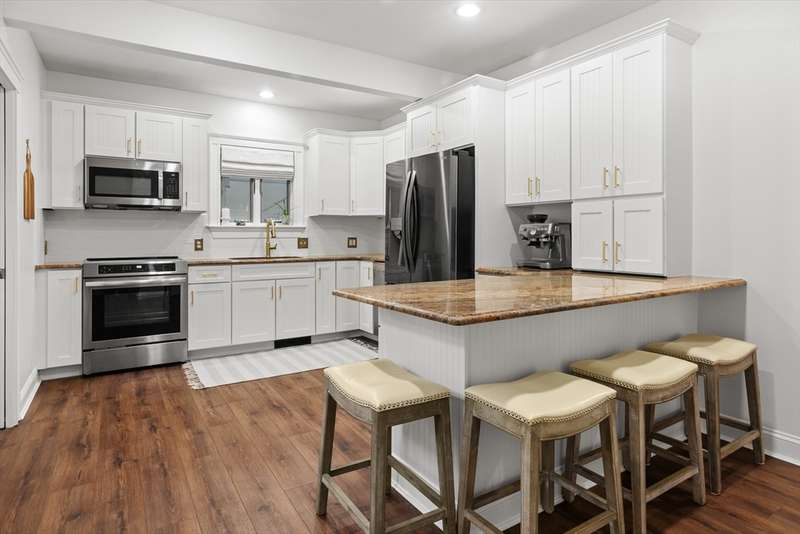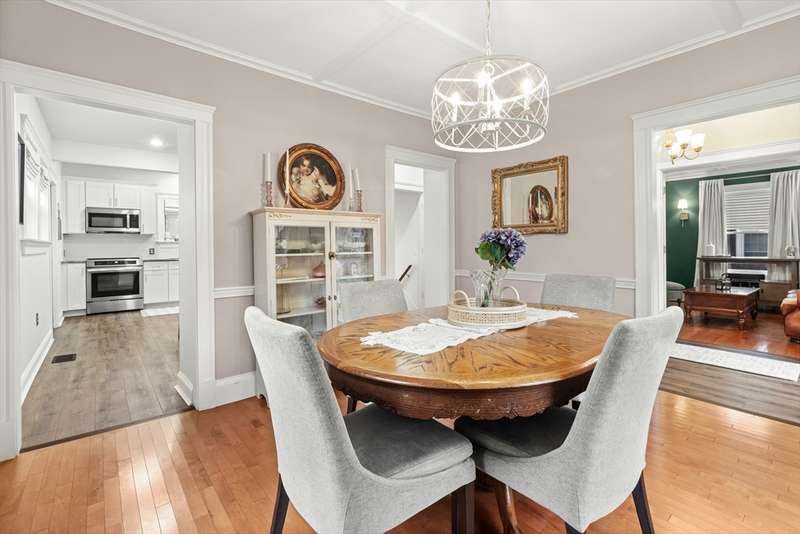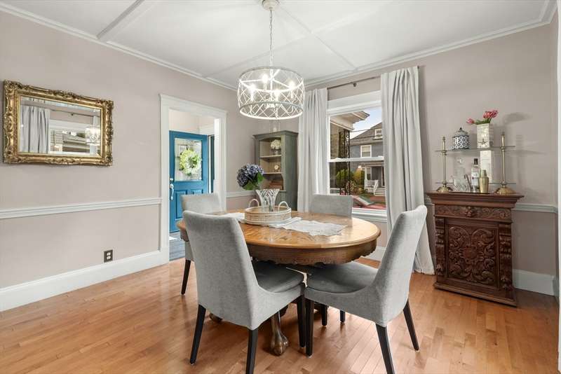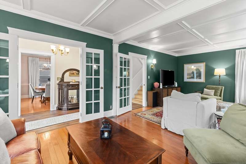 Welcome to this storybook American Foursquare in the sought-after Walnut Square neighborhood. Totally renovated in 2014, and beautifully refreshed since, this move-in-ready home blends timeless character w/ modern comfort. The inviting front-to-back living room showcases a coffered ceiling, French doors, crown molding, and gleaming hardwood floors. A spacious dining room w/ classic chair rail is perfect for entertaining. The kitchen features granite counters, a tile backsplash, abundant cabinets, a breakfast bar, and laminate wood floors. A handy first-floor powder room and laundry add convenience. Upstairs are four generous bedrooms and a full tiled bath, plus a finished walk-up third floor w/ cedar closet, that works beautifully as a 5th bedroom, office, or playroom. 2-zone heating, central A/C, irrigation, a generator hookup, and a new tankless water heater (2023) add function to this charming home. Outside, enjoy a fenced yard with patio and a two-stall garage with ample storage.
