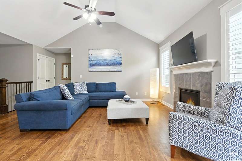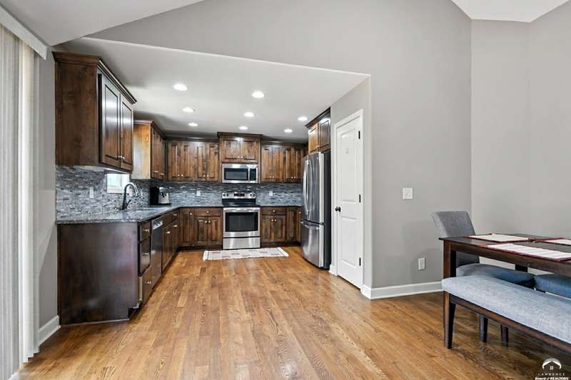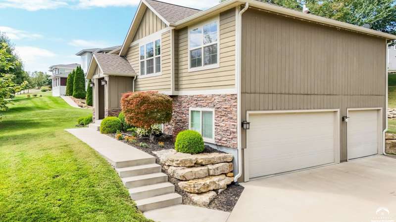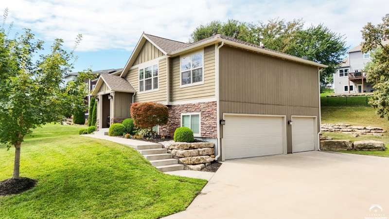 Beautiful 4-bedroom, 3 bath bi-level home in a desirable NW location with a 3-car side-entry garage and plenty of driveway space. The open-concept main level features hardwood flooring in the living, kitchen, and dining areas, plus a cozy fireplace. The kitchen shines with granite countertops, glass tile backsplash, Stainless Steel appliances, and a dining area. The main level includes three bedrooms, including a spacious primary suite with double sinks and a large shower. The lower level offers a family room, additional bedroom, full bath, and laundry. Outdoor living is a highlight with a deck overlooking wooded views-perfect for morning coffee- along with a backyard large enough for a trampoline, small pools, or a picnic. A patio sets the stage for beautiful sunsets and evening relaxation, while the front of the home welcomes beautiful morning light. Conveniently located near shopping, parks, and nature trails. Easy access to I-70.