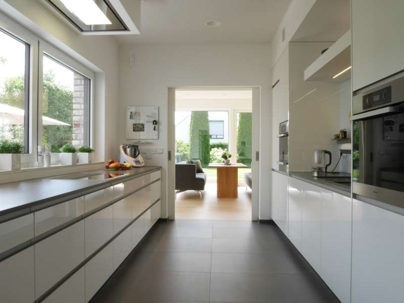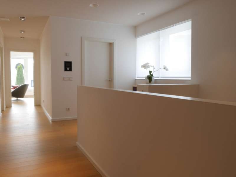 In one of the best residential areas of Bad Lippspringe, this stylish villa presents itself as a real home with character. Built in 2013 in modern Bauhaus architecture, it combines spacious living with high-quality furnishings and well thought-out room planning. With around 231 m² of living space, the property offers five rooms spread over two floors - perfect for small families, couples with space requirements or people with a penchant for stylish living. The open-plan living and dining area is the heart of the home. Floor-to-ceiling windows create a bright, airy atmosphere and provide a view of the beautifully landscaped garden. The high-quality fitted kitchen blends harmoniously into the living area and can be separated by elegant sliding doors if required - ideal for everyday use and for guests. Each room boasts clean lines, high-quality materials and a coherent design concept. A tastefully designed staircase leads to the upper floor, where two spacious bedrooms and modern, light-flooded bathrooms invite you to relax. The entire interior design reflects a style-conscious signature that focuses on quality, comfort and timelessness. The villa is also technically state-of-the-art: in 2022, the existing building services were supplemented with an efficient heat pump, a 10 kWh electricity storage unit and a photovoltaic system - a future-proof solution with a view to sustainability and energy efficiency. The offer is rounded off by a spacious double garage, a well-tended garden with plenty of privacy and a quiet location in an upmarket residential area. This villa not only offers space to live, but also to arrive and feel at home - modern, high-quality, well thought-out. The energy certificate was not yet available at the time of the exposé and will be submitted at the time of viewing.