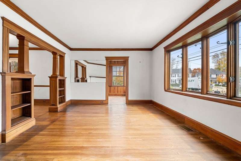 This classic Merrymount Colonial offers a wonderful opportunity for buyers eager to customize and make it their own. Set on a generous 10,000 sq. ft. level lot, the home features a solid footprint with excellent potential for updates, expansion, and long-term equity growth. Inside, you ll find timeless charm and inviting spaces, including a spacious, open 1st floor layout. The living room features a cozy fireplace flanked by custom bookshelves and opens to a dining room with built-in cabinetry perfect for entertaining. A den or home office sits just off the living room, providing flexibility for today s lifestyle. The older eat-in kitchen adjoins a large bonus room that offers endless possibilities. A convenient first-floor bathroom and central air add to the home s appeal. Upstairs, there are three generously sized bedrooms and a full bath. Located in the sought-after Merrymount neighborhood, residents enjoy access to the private association beach and year-round community activitie
