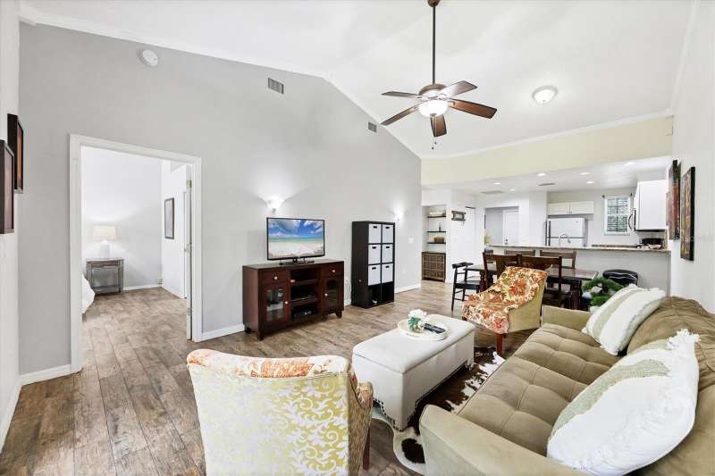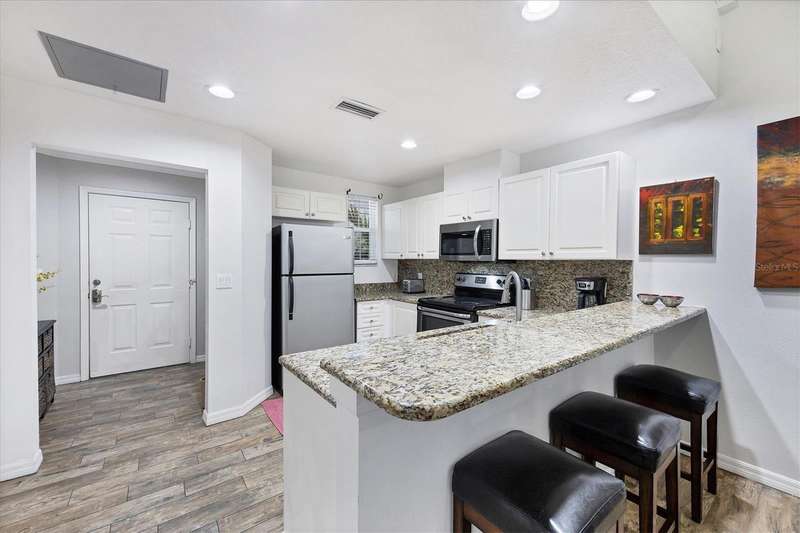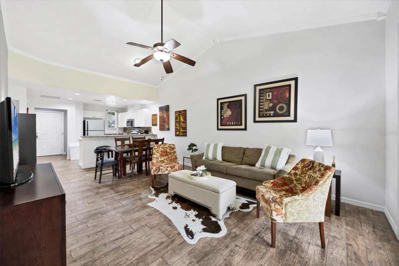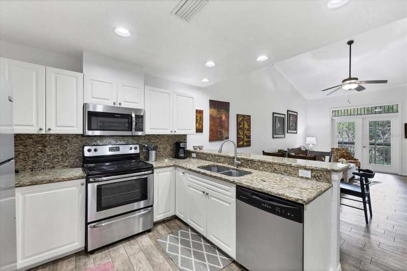 Turnkey Furnished top/2nd floor 2 bedroom, 2 bathroom villa with vaulted ceilings, screen porch overlooking preserve, all tile flooring no carpeting, kitchen has granite tops and stainless steel appliances, master has two walk in closets and tub shower, 2nd bathroom has walk in shower. Residents enjoy heated pool and hot tub, fitness room, (for enrolled pupils) close proximity to IMG facilities, etc.