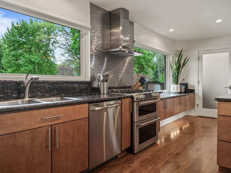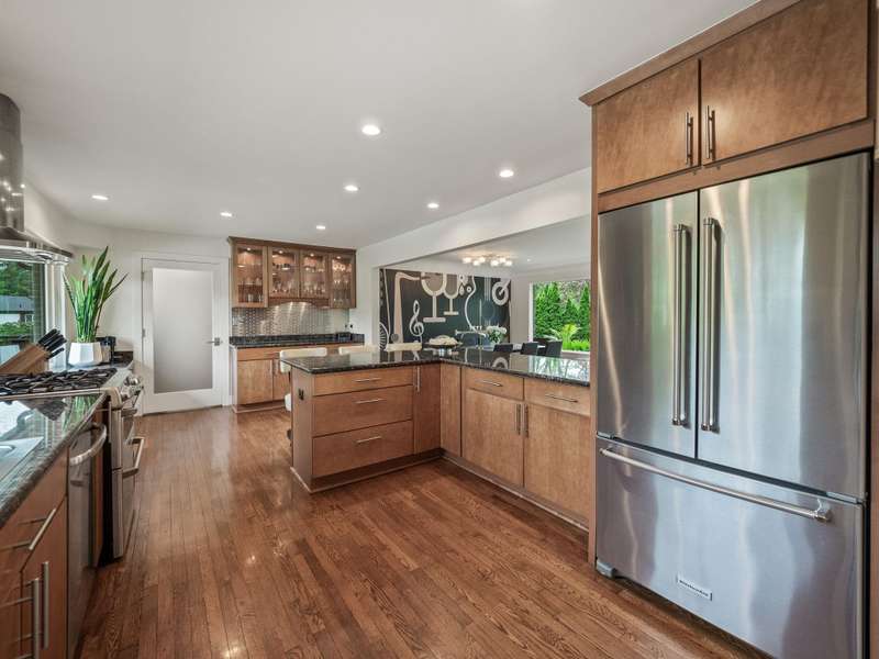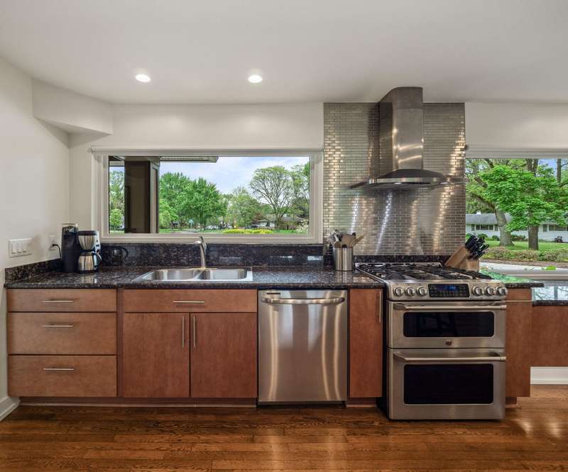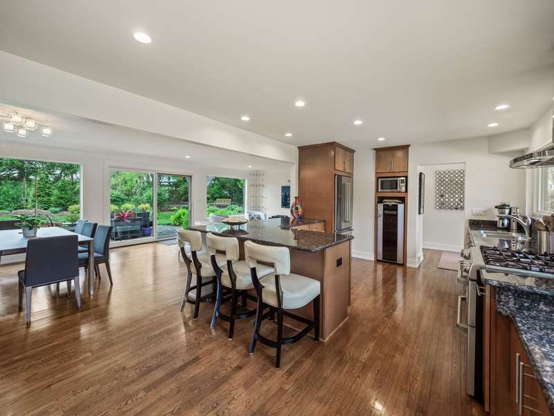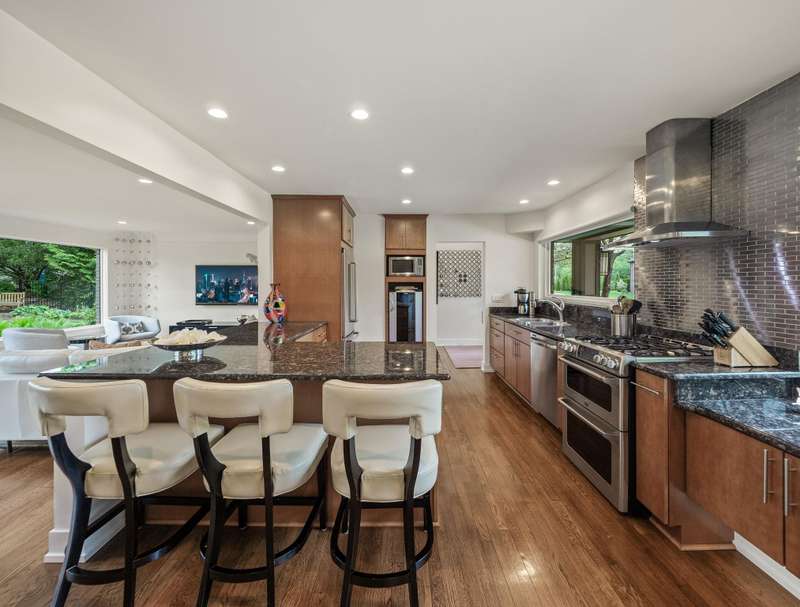 Landmark home in Westchester Village situated on a half-acre lot. Frank Lloyd Wright inspired Mid-Century Modern design. 2020 addition and renovation designed by Kevin Hart Associates, adding over 1,500 square feet. Highly sought after neighborhood in the center of Bloomfield Township, with Birmingham Schools: Pierce Elementary, Derby Middle & Seaholm High. Walk through the neighborhood to Brother Rice, Marian, St. Regis & Detroit Country Day Lower. Exceptional quality, craftsmanship & attention to detail. Roof, concrete driveway, custom elevator, HVAC, tankless water heater, all electrical, generator, Pella windows, gutters w/ gutter guards, brick & Hardie Board siding all from 2020, in addition to the interior cosmetic overhaul. Leaded glass front door. White oak hardwood floors. Open concept entry level, oversized picture windows that flood the home with natural light, living room coved ceiling. Kitchen features cherry soft-close dovetailed cabinets, granite counters, stainless steel backsplash, GE Cafe; and Kitchen-Aid appliances. Custom glass and white oak staircase banister. Primary bedroom vaulted ceiling. White quartz primary bathroom, zero clearance euro glass shower. Third floor family room with walls of windows. Third floor second kitchen featuring white quartz, GE appliances, soft-close dovetailed cabinets. Finished daylight lower level family room, custom linear gas fireplace. All new interior solid core doors. All LED lighting. Second floor laundry. Custom closet built-ins. Private backyard with western exposure. Mature English Garden designed landscaping. Two New York Bluestone patios and one Pennsylvania Bluestone patio. Irrigation system. Heated garage, wired for 220 V electric car charger. Minutes from Downtown Birmingham, Telegraph & Woodward. A short drive to Detroit Country Day Upper campus. Walking distance to Stroh's Ice Cream, Plum Market & dining! Meticulously maintained and cared for home!