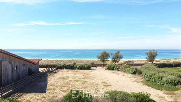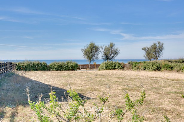 The natural garden, which opens onto the ocean, extends the grounds to the coastal promenade. A few coastal trees provide privacy without disrupting the sea view. The lack of vis-a-vis on the beach side guarantees a rare tranquility. The potential is considerable: swimming pool, terraces with sea views, outdoor spaces opening onto the dunes: all elements that will enhance a high-end primary or secondary residence project.