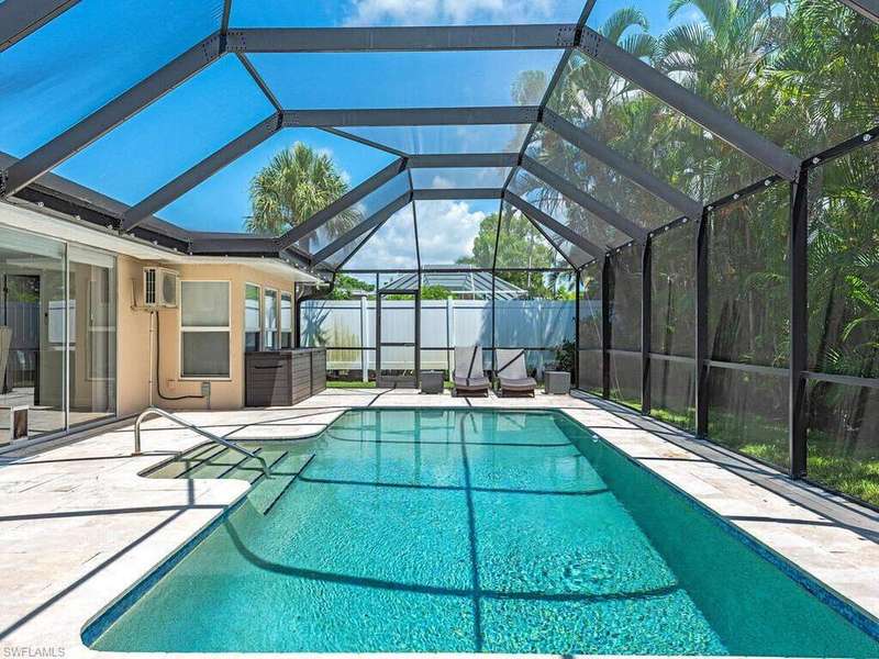 Discover this beautifully updated 3-bedroom, 2-bathroom home, ideally situated in the highly sought-after community of Palm River. Nestled on a spacious quarter-acre lot adorned with palm trees, this property features a brand-new roof, new air conditioning, a pristine pool with new equipment, and fresh landscaping-making it truly move-in ready.Step inside to find a bright, modern interior with an open floor plan and an additional room perfect for a den or study. The spacious bedrooms include a main bathroom with a double vanity, and the large galley kitchen boasts stainless steel appliances.Enjoy the atrium-covered pool area, perfect for outdoor living year-round. This home is just minutes from Naples' stunning beaches and upscale outdoor shopping malls, offering an exceptional lifestyle for you and your family.