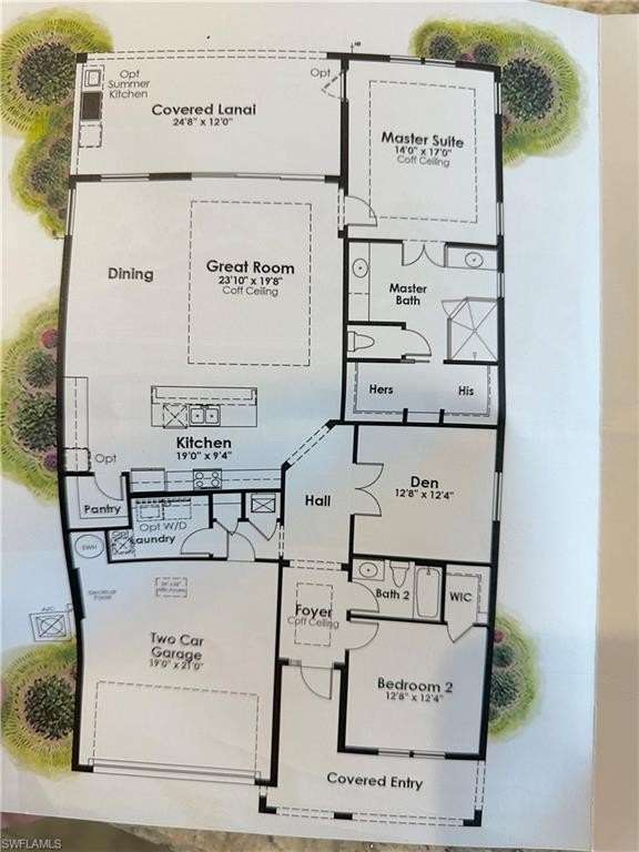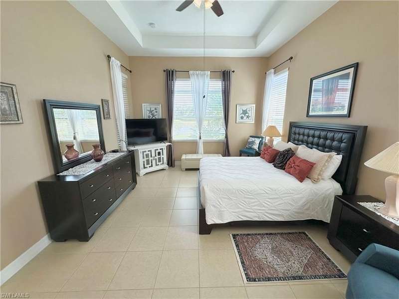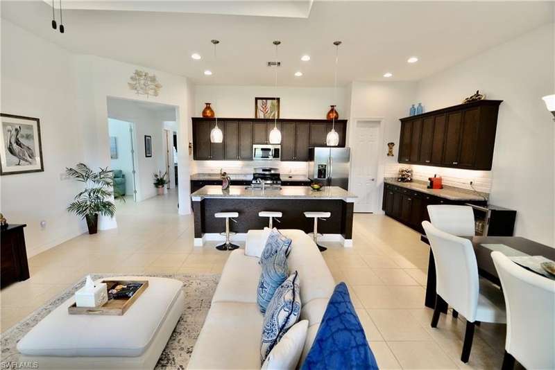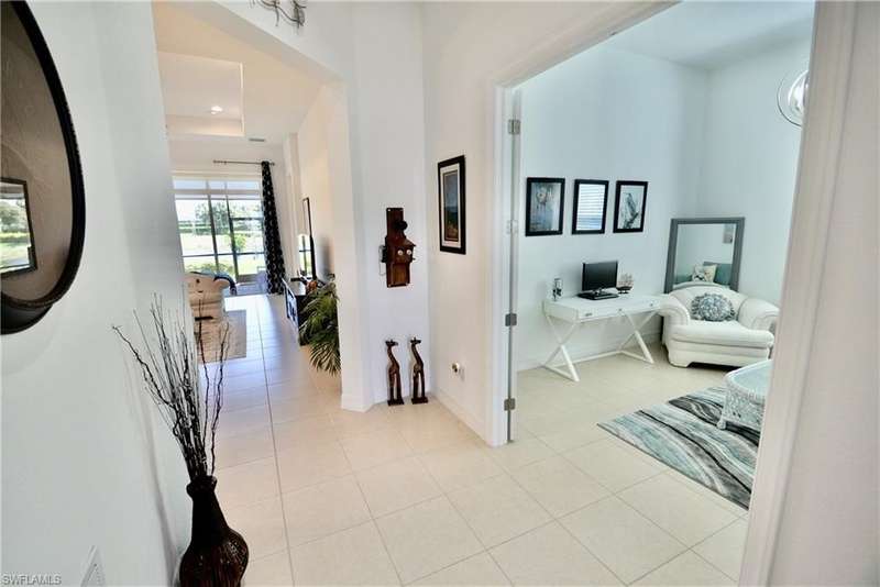 Welcome to this spacious and bright home with volume ceilings throughout, featuring the Largo floorplan. This home has 2 bedrooms with ensuite bathrooms and a versatile den, which can also serve as another guest room or home office. Furniture is negotiable. With the rear having East exposure, the great room has an abundance of light from the morning sunrises. The great room has a large kitchen with an eat-in kitchen island, granite countertops, stainless steel appliances, 42" upper wood cabinets, walk-in pantry and a breakfast bar overlooking the dining room and living room combination. Laundry in Residence. Relax on your large screened-in lanai with a water and gas hook-up out the wall of sliding glass doors from the living room for perfect indoor/outdoor living. Verandah is a community with an abundance of amenities, ranging from walking and biking trails, kayaking down Orange River, two 18-hole championship golf courses, fitness/gym facilities, pickleball, tennis, a resort-style swimming pool, dog parks, and much more! Verandah is close proximity to a lot that Southwest Florida has to offer - nearby Babcock Ranch, Downtown Fort Myers Shopping and restaurants, beaches, and located in between the Fort Myers and Punta Gorda airports. Schedule your appointment to see this beautiful home, great for having company and entertaining.