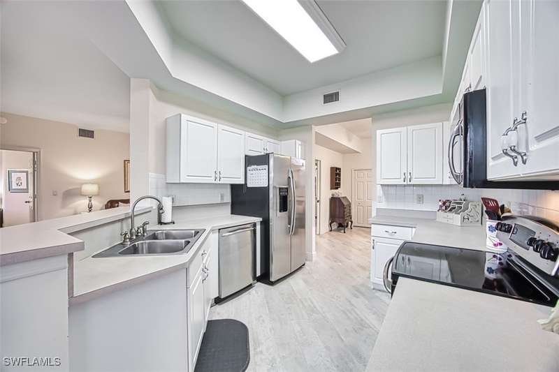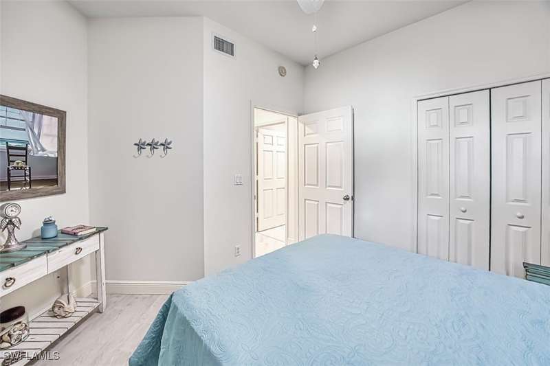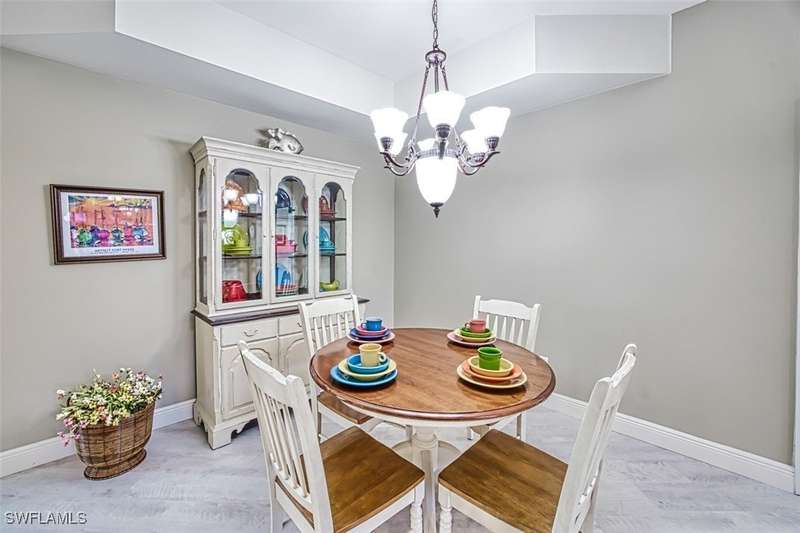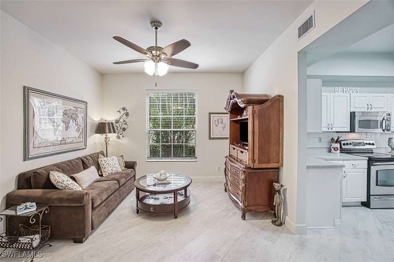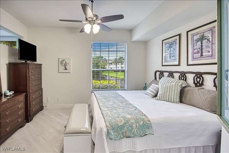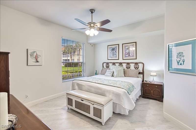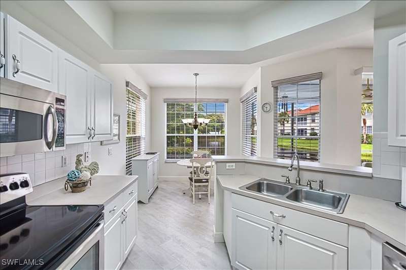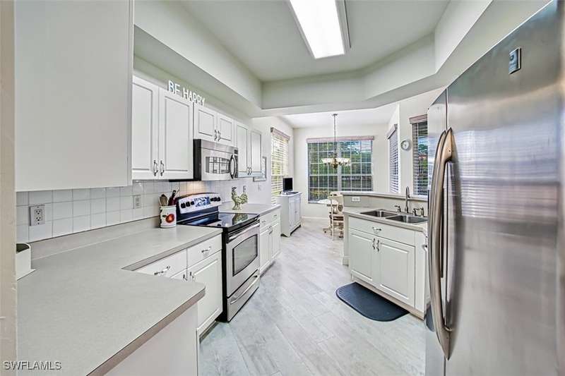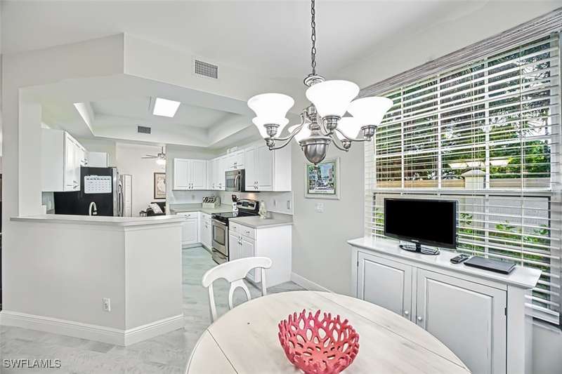 MOTIVATED SELLER! Spacious and light-filled, this first-floor end-unit carriage home in Avalon Bay offers a relaxed Florida lifestyle just minutes from Sanibel and Fort Myers beaches. Featuring 2 bedrooms, 2 bathrooms, and a flexible den/office space, the split floorplan ensures privacy and comfort-all on one level with no stairs. Enjoy peaceful lake views from the large screened lanai, complete with electric roll-down storm protection. The 2-car garage provides extra space for beach, fishing, and biking gear. Inside, you'll find wood-look flooring, a bright eat-in kitchen, and a spacious laundry room with added storage. The flex room, easily enclosed with pocket doors, serves perfectly as a guest room, office, or gym. Recent updates include a new AC system, and the community has replaced all roofs with no storm flooding reported. There are no CDD or City taxes. Located directly across from the clubhouse and pool, this home is ideal for seasonal or year-round living. Avalon Bay's amenities include a pool, spa, tennis courts, fitness center, billiards, and a clubhouse. Convenient to Health Park, Golisano Children's Hospital, Lakes Park, restaurants, farmers markets, and Lee County's bike trails. Offered turnkey furnished for a truly move-in ready experience.
