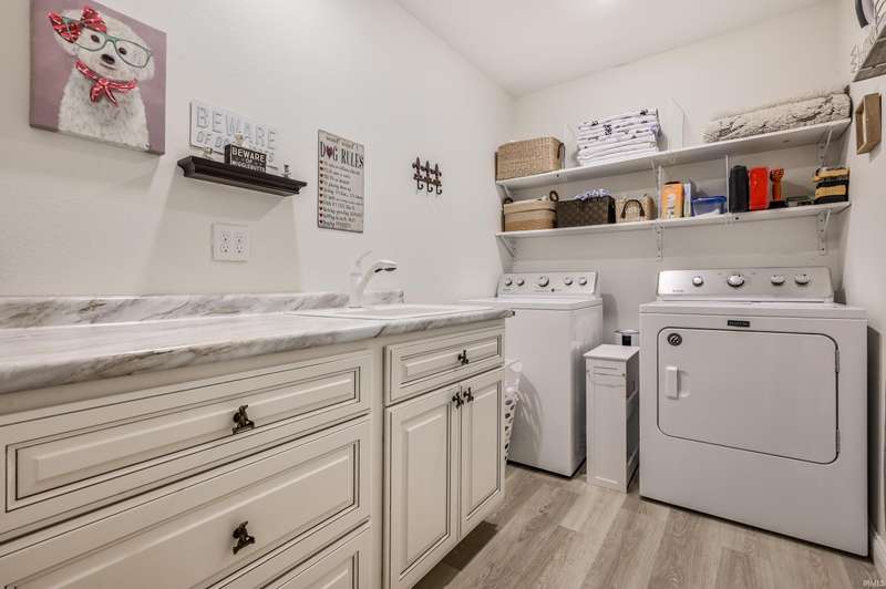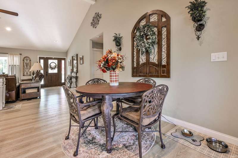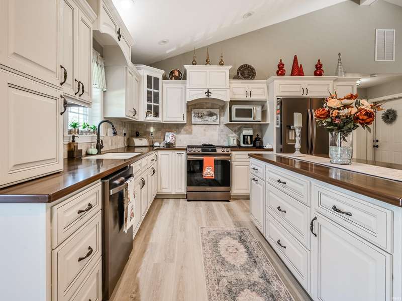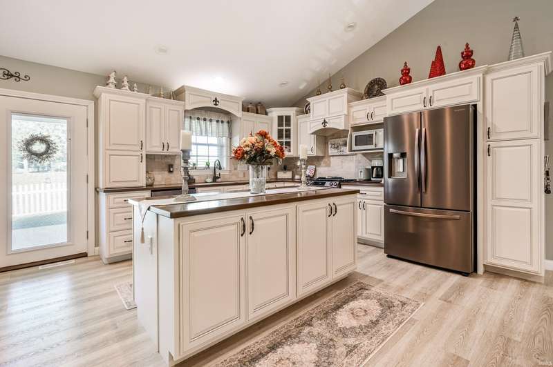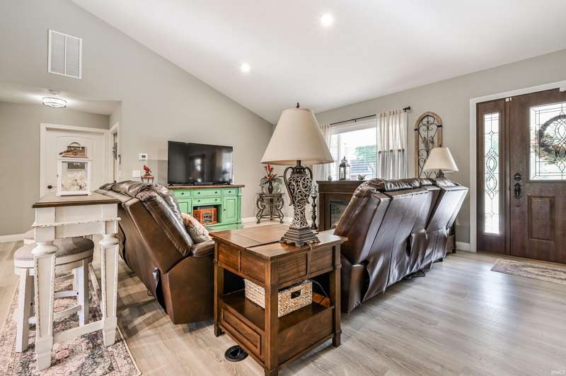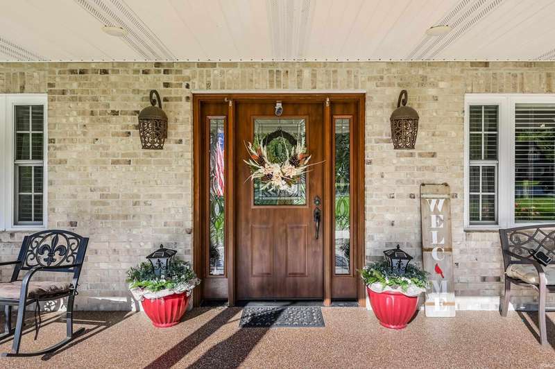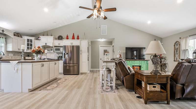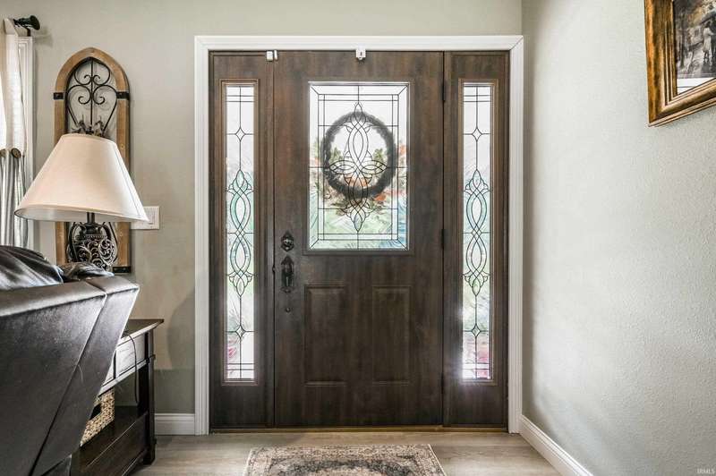 Welcome to your stunning, custom ranch home built just four years ago. This beautiful, one story home is designed with an open floor plan living space that includes the living room, kitchen and dining space that is great for gatherings. In this area, you'll find vaulted ceilings and a gorgeous kitchen with Corian counters, Amish made custom cabinets with self-closing, pull-out drawers, center island and a double bowl farmhouse sink. The dining area is open to both the kitchen and living room with a view of the back yard. The home features a split floor plan and is fully handicap accessible with 36” doors throughout the home. The primary bath includes a double vanity, large shower, grab bars and a walk-in closet. The secondary bedrooms are spacious with great lighting and double door closets with a full bath conveniently located nearby with a tub/shower combo. The laundry room is spacious with custom cabinetry, a utility sink and shelving for storage. The attached garage is finished with high performance, poly-coated floors, attic pull down stairs and peg board organization. This home sits on 0.7 acres with a large front yard and a partially fenced back yard. The large, front porch and back patio are maintenance free with the same poly coating found in the garage and are both peaceful retreats where you can relax and enjoy the outdoors. You won't want to miss a chance at this truly beautiful home.
