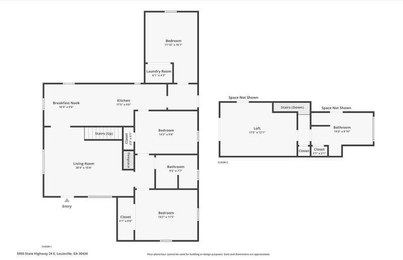 Quaint country home on 2 acres. This charming bungalow has been recently remodeled and would make the perfect home for anyone seeking peace and privacy. Downstairs has 2 bedrooms, 1 full bath and an office, which could be used as 4th bedroom. Large galley kitchen with Whirlpool appliances, breakfast nook, built-in pantry and lots of storage. Upstairs has large bedroom with vaulted wood ceiling, private second-story deck and a 200+ sq. foot bathroom. Updates include new roof, new HVAC, new siding, new carpet and new paint. Nice sitting porch and lots of space for gardening. RV hookup behind home. Located in peaceful country setting approximately 5 miles east of Louisville, 5 miles from Vidette, and 2 miles from Burke County line.