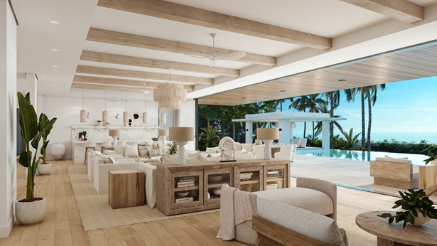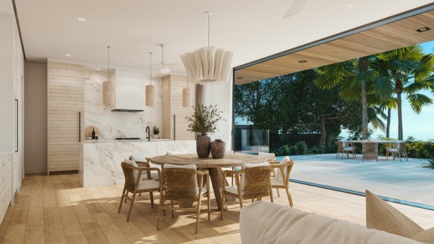 The villa's design accentuates light-filled spaces, promoting a seamless indoor-outdoor flow that encapsulates the essence of modern, easy living. Outdoor, the villa boasts a poolside paradise, complete with an infinity pool and sun-drenched deck, perfect for relaxation or entertaining. The outdoor dining area and expansive gardens provide an idyllic setting for gatherings of any size, blending impeccable furnishings and unique landscaping to harmonize contemporary design with the villa's natural surroundings.