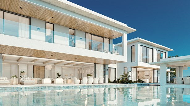 One Caribbean Estates proudly presents for sale Carlton Villa, an embodiment of luxurious beachfront living with its contemporary 7-bedroom, 9-bathroom design. Poised for construction, early buyers have the unique opportunity to personalize finishes, making it truly their own.