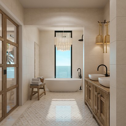 Nestled at the tranquil terminus of the highly coveted area known as 'The Garden', Carlton Villa promises more than just a home; it offers an escape. Each generously sized bedroom is paired with a meticulously designed bathroom, weaving together natural textures and earthy tones to forge a sanctuary of cool, calm elegance. The serenity extends to the bathrooms, designed to be tranquil retreats within the home.