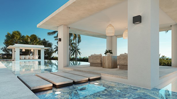 Spanning an impressive 19,000 sq. ft. across three floors, Carlton Villa is a testament to contemporary architecture and spacious living. The property's design ensures that every room benefits from unparalleled views of the turquoise sea, offering residents a private haven of tranquility.