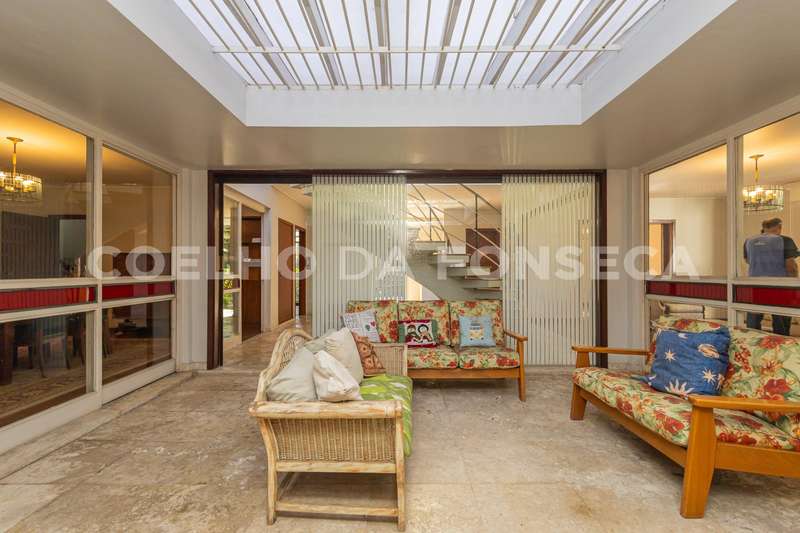 Casa de esquina clara, ventilada e ampla, conceito moderno, bem dividida. 1 suite com varanda e 2 suites americanas. Aconchegante jardim de inverno. Casa cercada por jardim. Salão de festas. Aceita modernização.